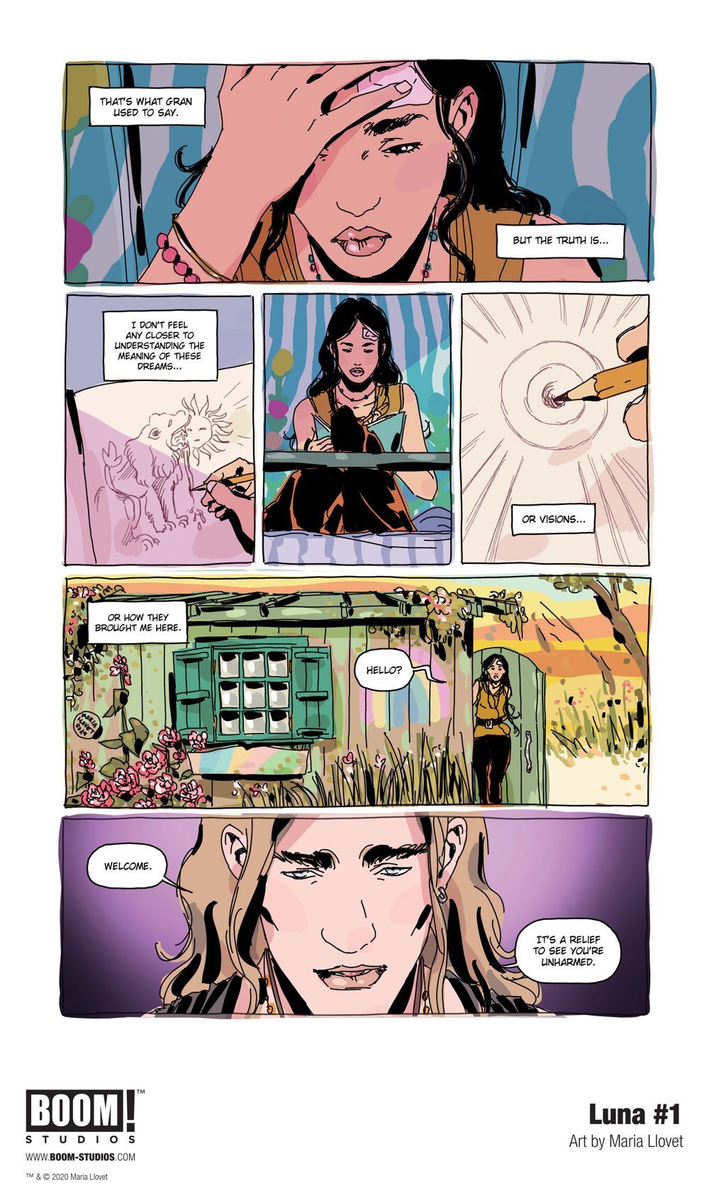 Media Release -- BOOM! Studios revealed today a first look at LUNA #1, the premiere issue of a new original five-issue series by comics creator Maria Llovet (Faithless, Heartbeat). In this darkly erotic series, an innocent young woman finds herself drawn to a mysterious commune where the search for immortality collides with the true power of enduring love, available in February 2021.
