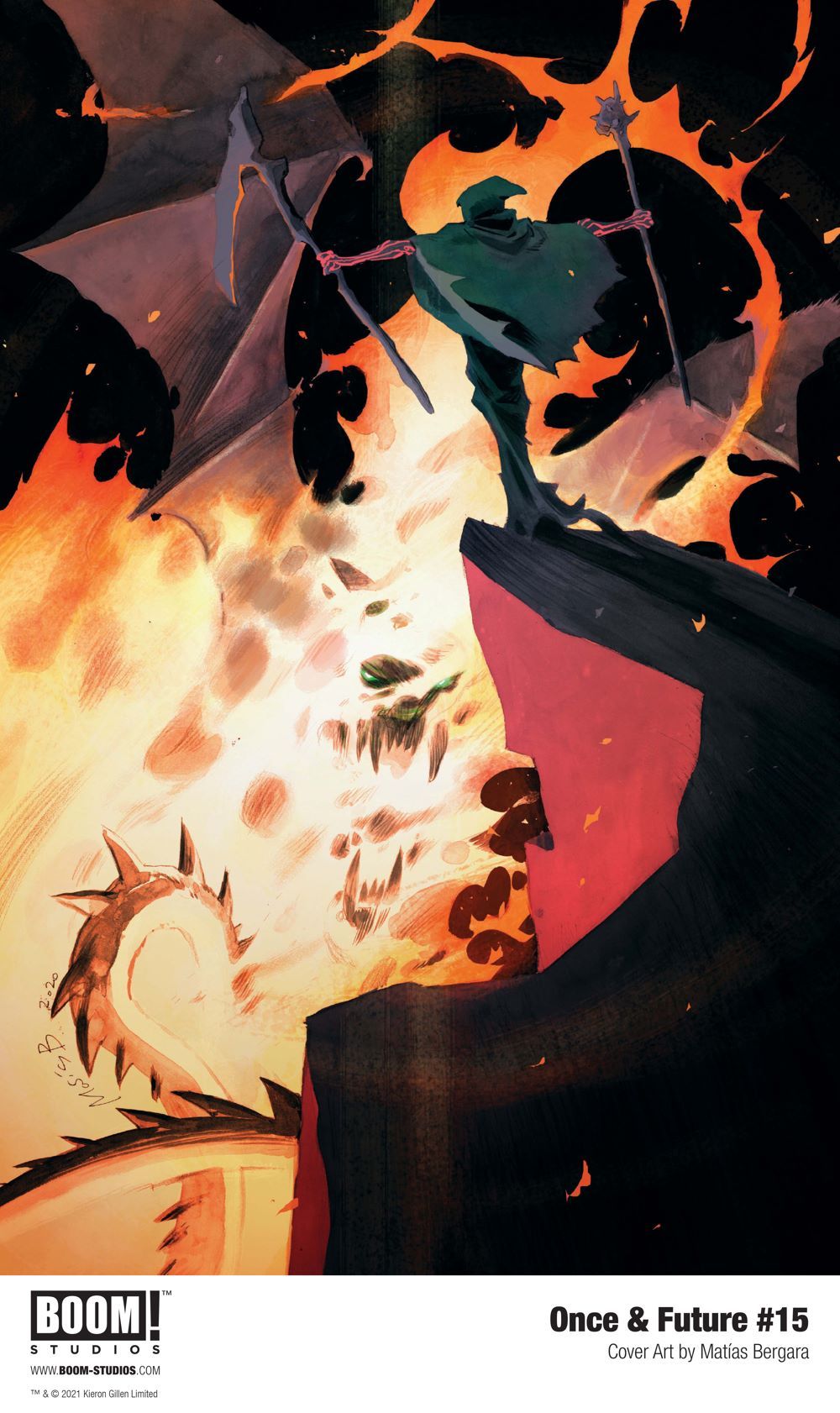 Print copies of ONCE & FUTURE #15 will be available for sale on January 20, 2021 exclusively at local comic book shops (use comicshoplocator.com to find the nearest one) or at the BOOM! Studios webstore. Digital copies can be purchased from content providers, including comiXology, iBooks, Google Play, and Madefire.