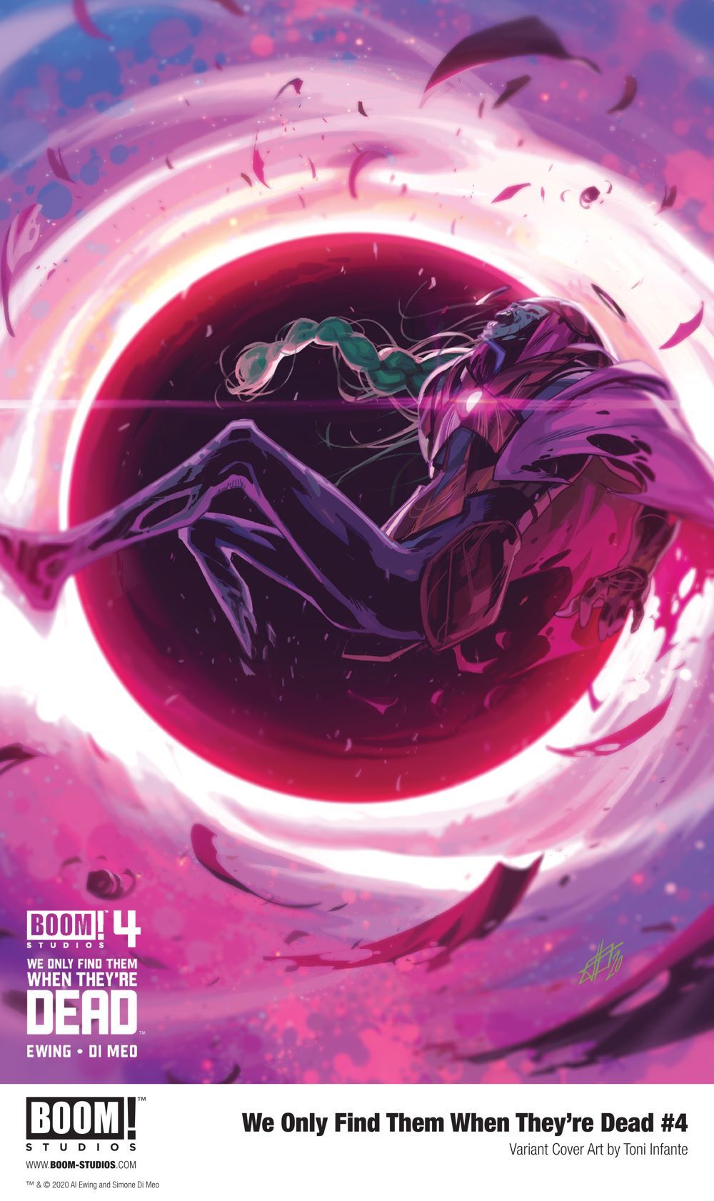 WE ONLY FIND THEM WHEN THEY'RE DEAD #4 features main cover art by series artist Simone Di Meo (Mighty Morphin Power Rangers) and variant covers by fan favorite artists Toni Infante (Mega Man: Fully Charged, The Red Mother), and Valerio Schiti (Tony Stark: Iron Man) with colors by Claudia Ianniciello (Doctor Who).