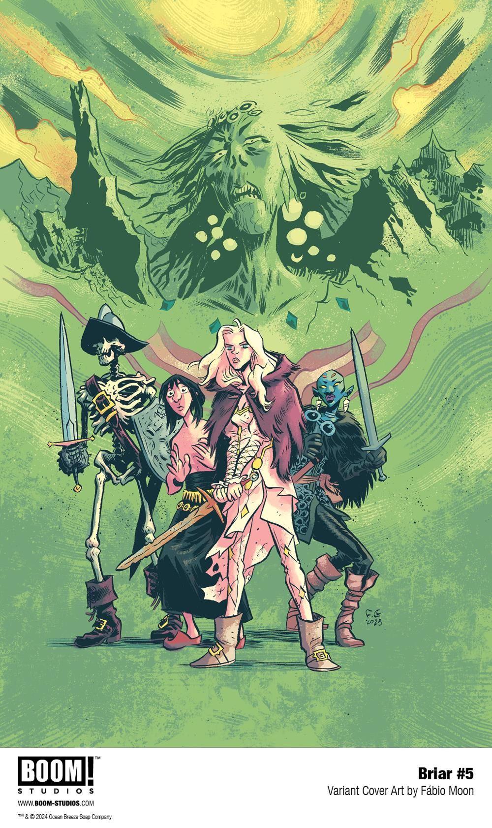 BRIAR is the newest release from BOOM! Studios' eponymous imprint, home to critically acclaimed original series, including BRZRKR by Keanu Reeves, Matt Kindt, and Ron Garney; Something is Killing the Children by James Tynion IV and Werther Dell'Edera; Grim by Stephanie Phillips and Flaviano; Stuff of Nightmares by R.L. Stine and A.L. Kaplan; Damn Them All by Simon Spurrier and Charlie Adlard; Once Upon a Time at the End of the World by Jason Aaron, Alexandre Tefenkgi, Leila del Duca, and Nick Dragotta; Know Your Station by Sarah Gailey and Liana Kangas; A Vicious Circle by Mattson Tomlin and Lee Bermejo; The Neighbors by Jude Ellison S. Doyle and Letizia Cadonici; Ghostlore by Cullen Bunn and Leomacs; Sirens of the City by Joanne Starer and Khary Randolph; Coda by Simon Spurrier and Matías Bergara; Rare Flavours by Ram V and Filipe Andrade; Underheist by David and Maria Lapham; and Animal Pound by Tom King and Peter Gross. The imprint also publishes popular licensed properties, including Dune: House Harkonnen from Brian Herbert, Kevin J. Anderson, and Michael Shelfer; Mighty Morphin Power Rangers by Melissa Flores and Simona Di Gianfelice; and The Expanse: Dragon Tooth by Andy Diggle and Rubine.