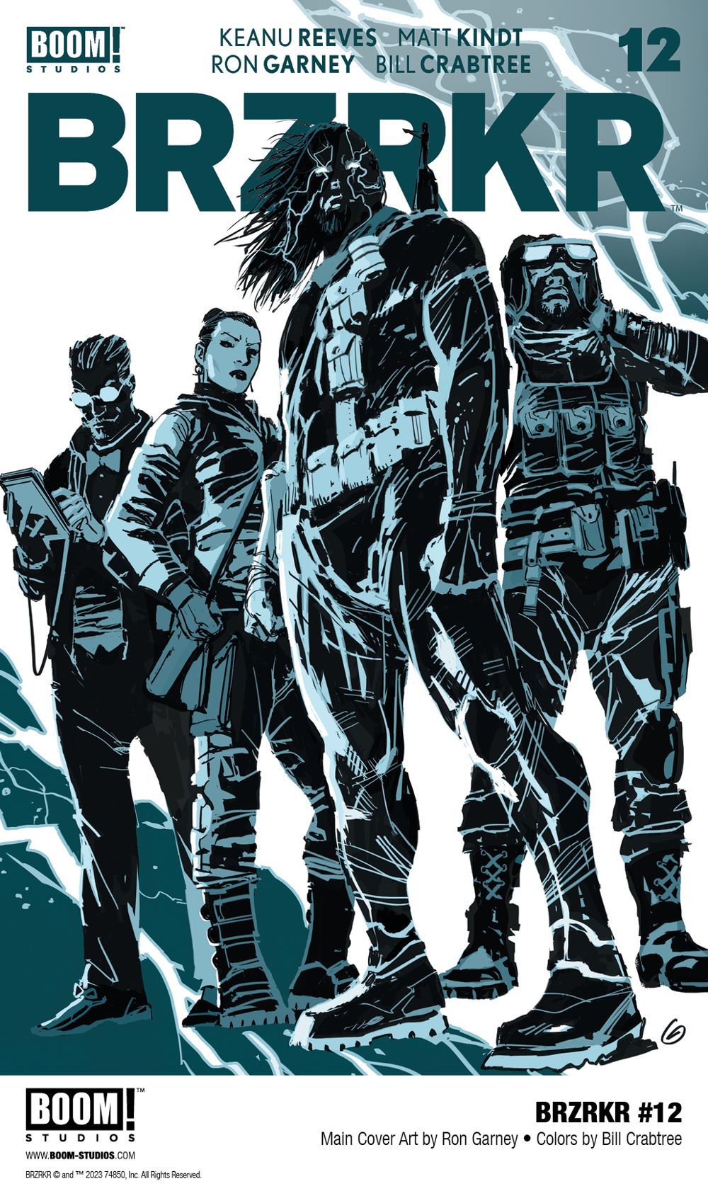 Media Release -- BOOM! Studios today revealed a first look at the final issue of the record-breaking hit comic book series BRZRKR by the iconic Keanu Reeves and NYT bestselling co-writer Matt Kindt (Folklords, Grass Kings), acclaimed artist Ron Garney (Wolverine, Captain America), colorist Bill Crabtree (BPRD), and letterer Clem Robins (Hellboy). Concluding in BRZRKR #12, discover the unfolding final chapter of the epic story that's sold over a million copies, this March!