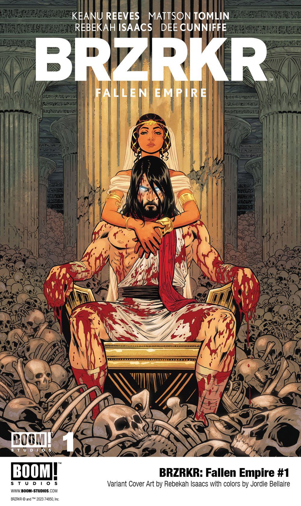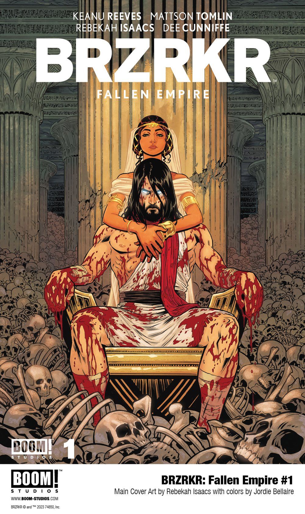 Media Release -- Created by the iconic Keanu Reeves, BRZRKR and The Batman Part II screenwriter and Eisner-nominated writer Mattson Tomlin (A Vicious Circle) is joined by hit artist Rebekah Isaacs (Money Shot) and colorist Dee Cunniffe to bring to light a new chapter in the BRZRKR mythos with BRZRKR: FALLEN EMPIRE #1.