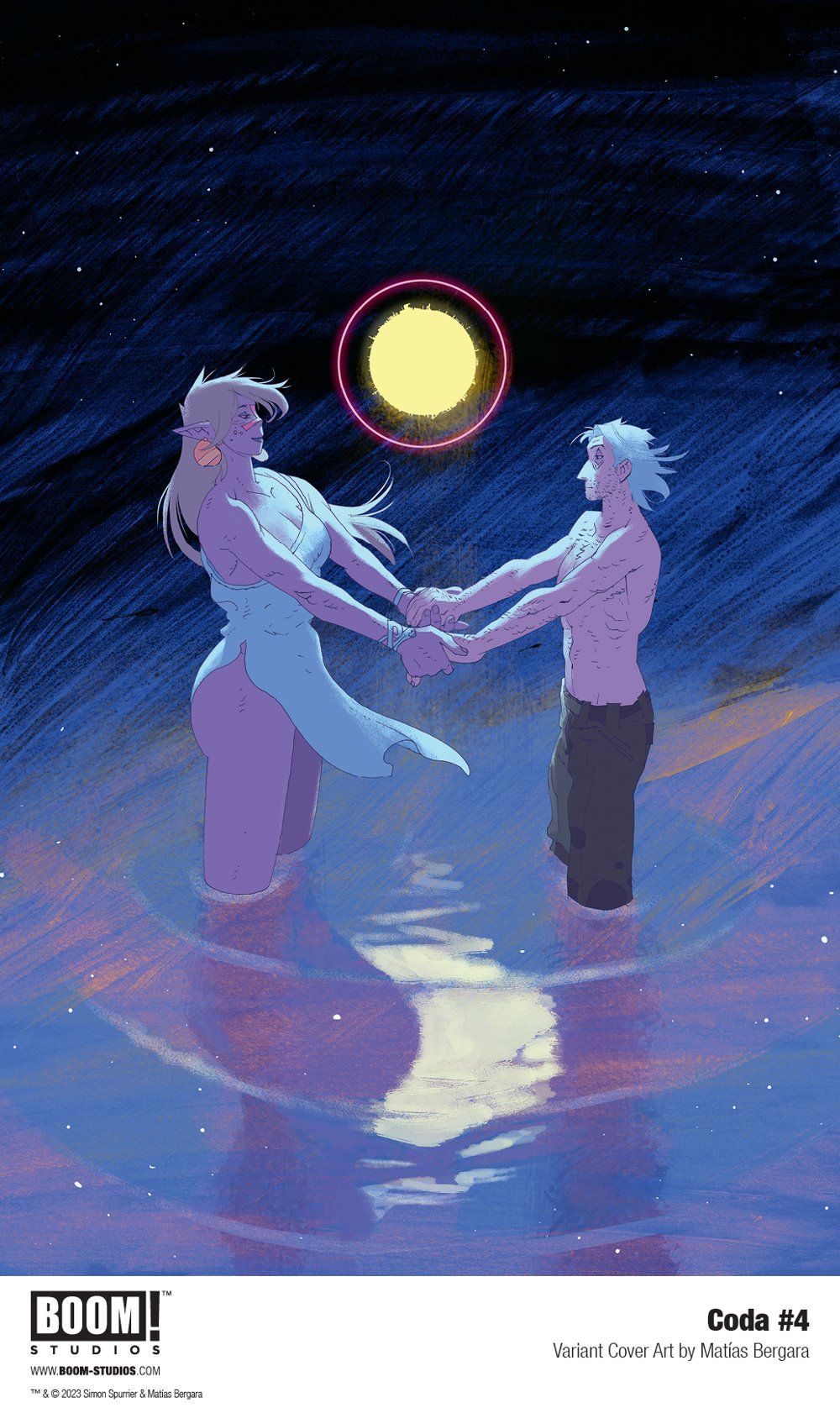Media Release -- BOOM! Studios today revealed a first look at CODA #4, the fourth issue of the new five-issue original series from GLAAD Media Award-winning writer Simon Spurrier (Damn Them All), Entertainment Weekly's 2019 Artist of the Year Matías Bergara (Step By Bloody Step), color assistant Patricio Delpeche, and letterer Jim Campbell, available in December 2023.