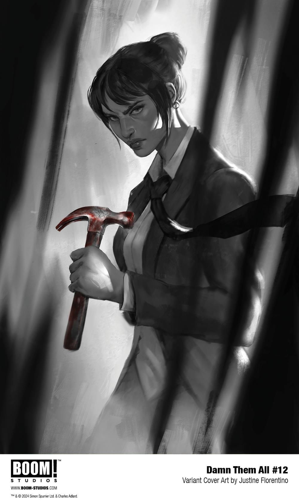 DAMN THEM ALL #12 features main and variant cover art by series artist Charlie Adlard, and variant covers by acclaimed illustrators Justine Florentino (Grim) and Alex Maleev (Infamous Iron Man).