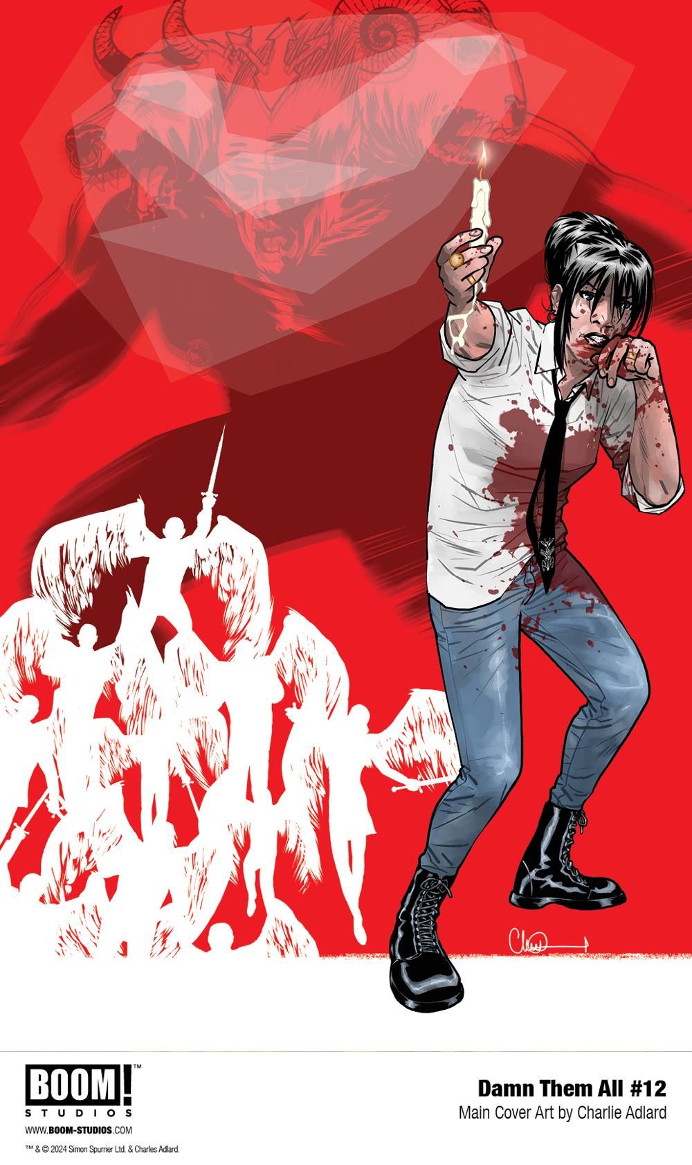 Media Release -- BOOM! Studios today revealed a first look at DAMN THEM ALL #12, the FINAL issue of the original horror series from highly acclaimed writer Simon Spurrier (Hellblazer, Coda), legendary The Walking Dead artist Charlie Adlard, colorist Sofie Dodgson (Bitter Root) with color assists by Daniel Silva De Carvalho, and letterer Jim Campbell (All-New Firefly), continuing the dark adventures of your favorite new occult anti hero, available in January.