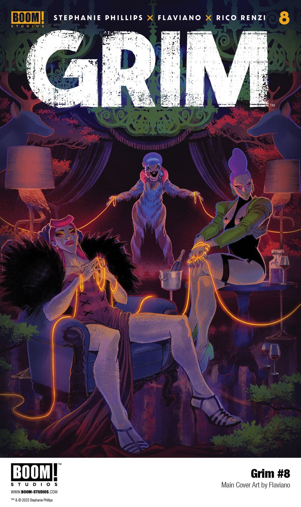 Print copies of GRIM #8 will be available for sale on February 8, 2023 exclusively at local comic book shops (use comicshoplocator.com to find the nearest one) or at the BOOM! Studios webstore. Digital copies can be purchased from content providers, including comiXology, iBooks, Google Play, and Kindle.