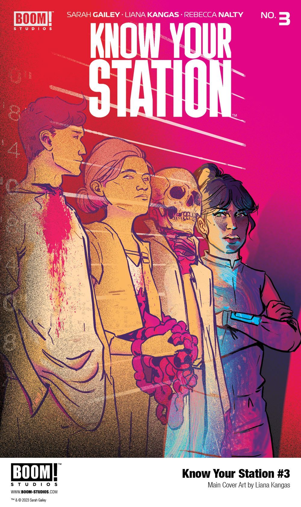 Media Release -- BOOM! Studios revealed today a first look at KNOW YOUR STATION #3, the next issue in a five-issue limited series from the highly acclaimed writer Sarah Gailey (Eat the Rich, Magic for Liars), with star artist Liana Kangas (TRVE KVLT), colorist Rebecca Nalty, and letterer Cardinal Rae, that takes a stab at the ultra-wealthy, their dreams of escaping the very planet they've put in peril, and the consequences of a future that might not be so far away, available in February 2023.