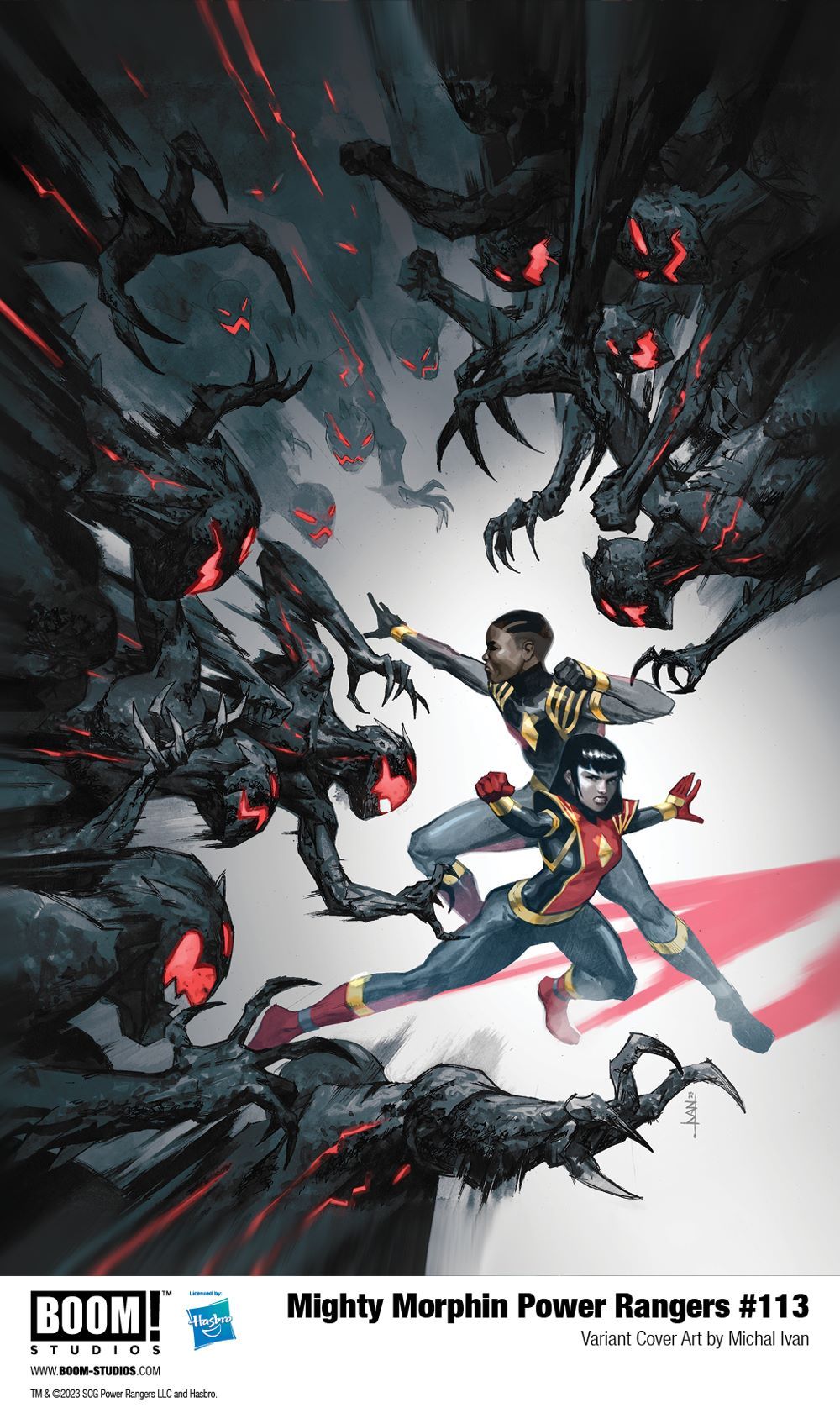 MIGHTY MORPHIN POWER RANGERS #113 features main cover art by star artist Taurin Clarke (Miles Morales: Spider-Man) and variant covers by acclaimed illustrators Björn Barends (Spawn), Goñi Montes (Mighty Morphin Power Rangers), Taurin Clark (Miles Morales: Spider-Man), Michal Ivan (Power Rangers Universe), and Paulina Ganucheau (Wonder Woman).