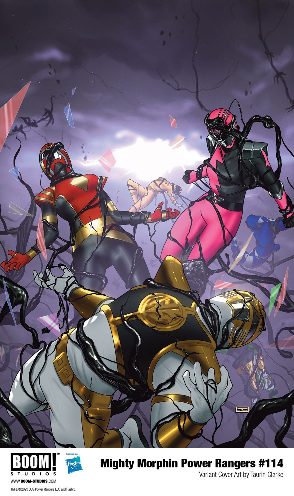 MIGHTY MORPHIN POWER RANGERS #114 features main cover art by star artist Taurin Clarke (Miles Morales: Spider-Man) and variant covers by acclaimed illustrators Björn Barends (Spawn), Goñi Montes (Mighty Morphin Power Rangers), Erica D'Urso (Captain Marvel) with Igor Monti, and Veronica Fish (Archie).