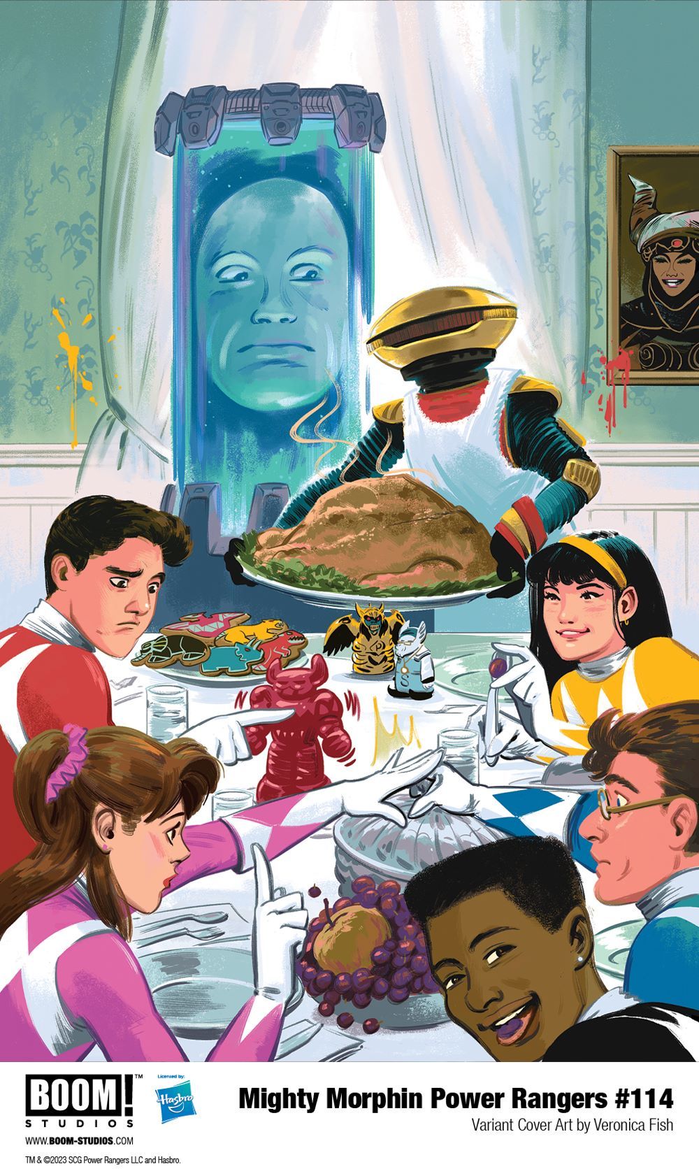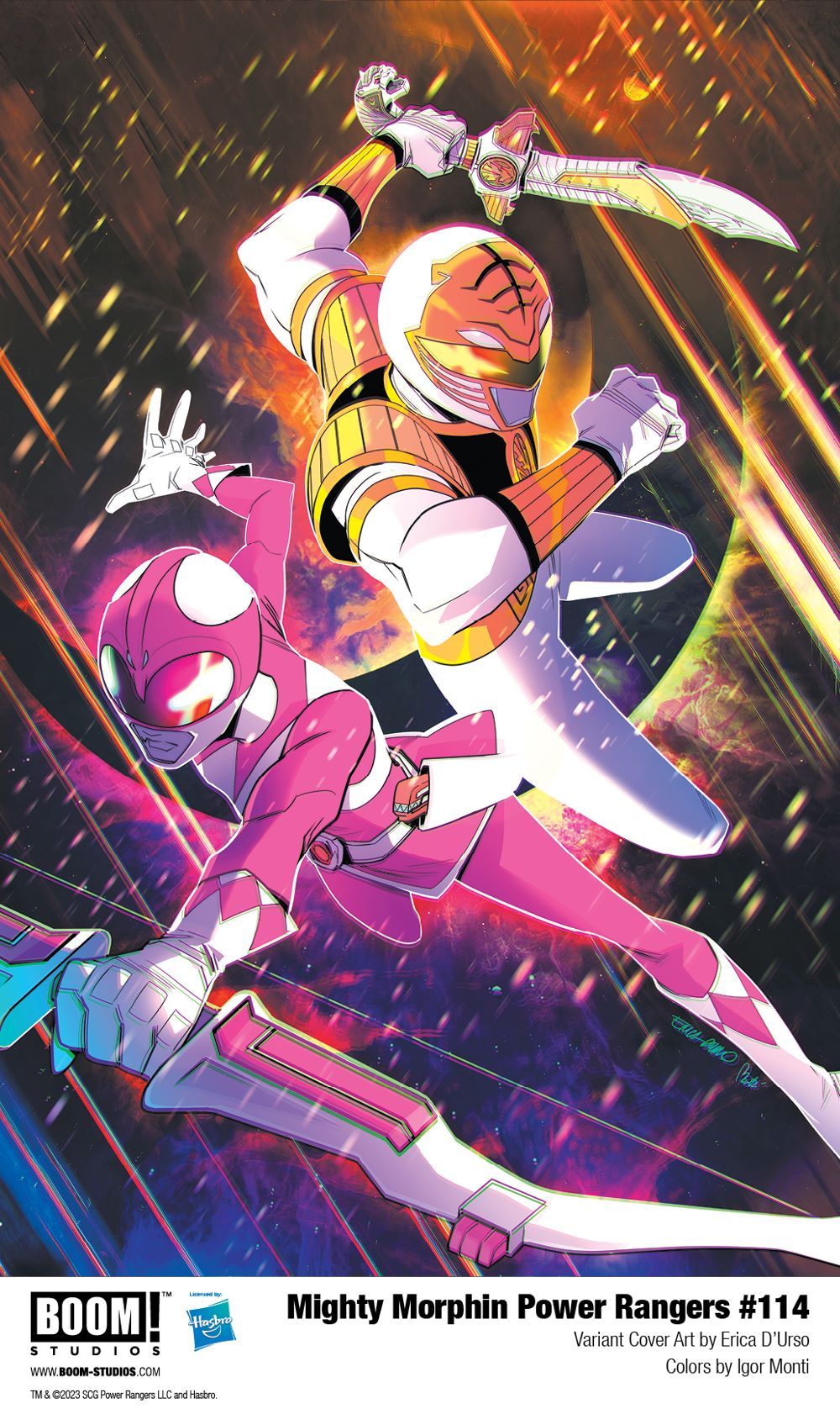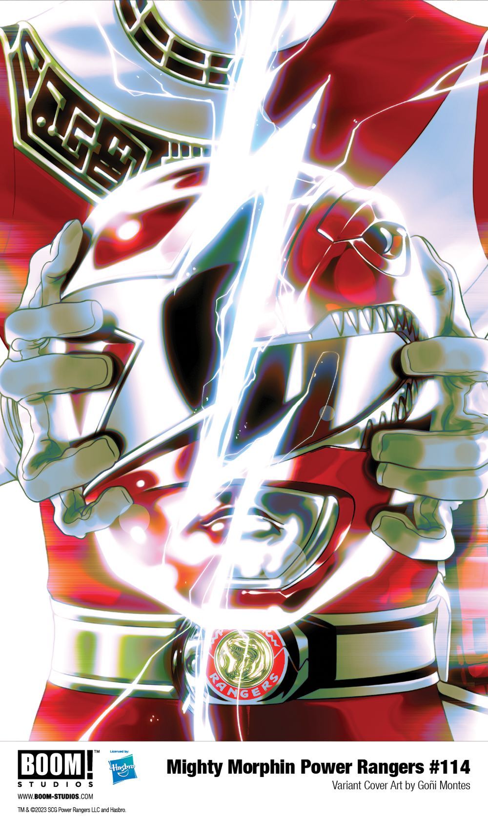 Print copies of MIGHTY MORPHIN POWER RANGERS #114 will be available for sale on November 22, 2023 at local comic book shops (use comicshoplocator.com to find the one nearest you) or at the BOOM! Studios webstore. Digital copies can be purchased from content providers like comiXology, iBooks, Google Play, and Kindle.