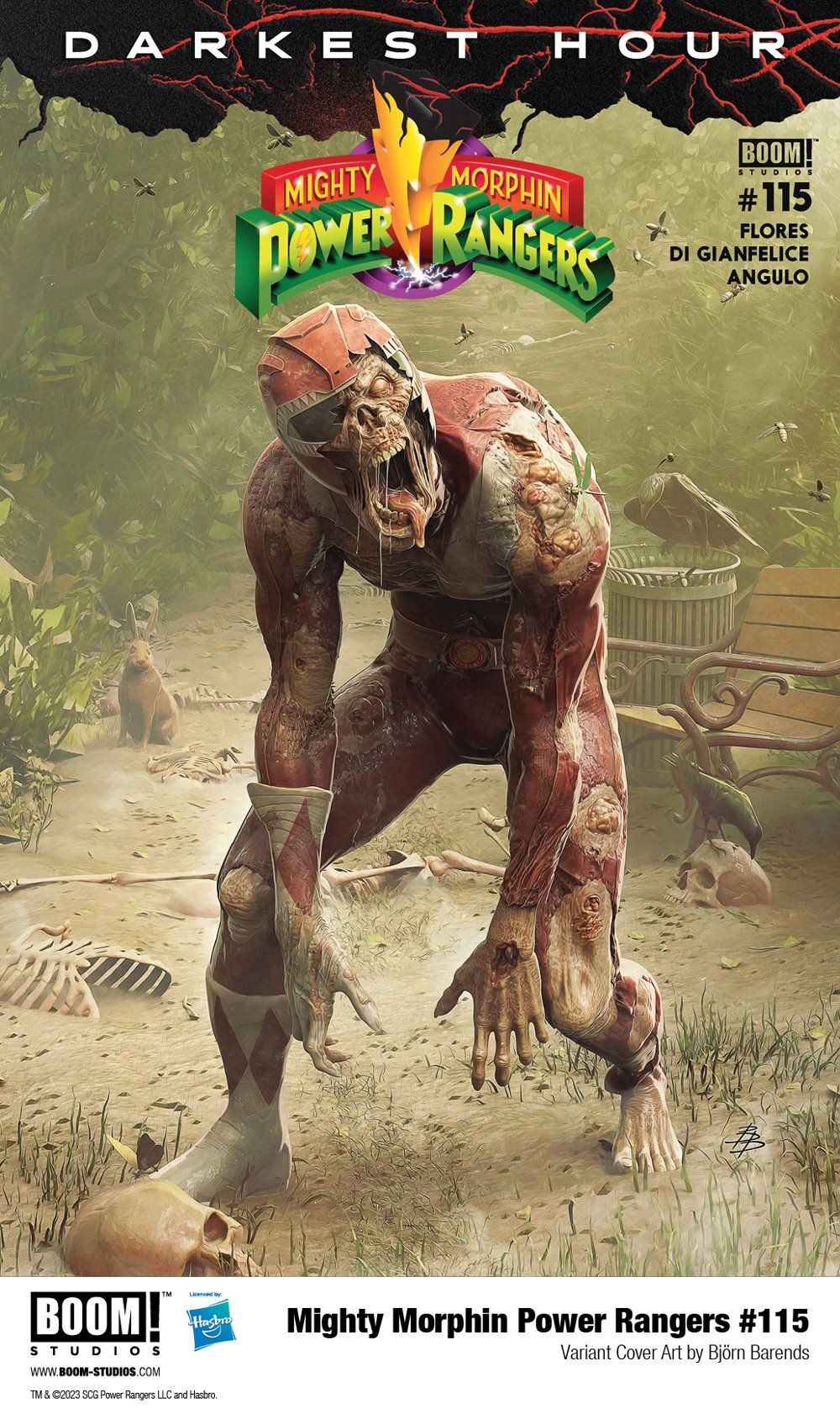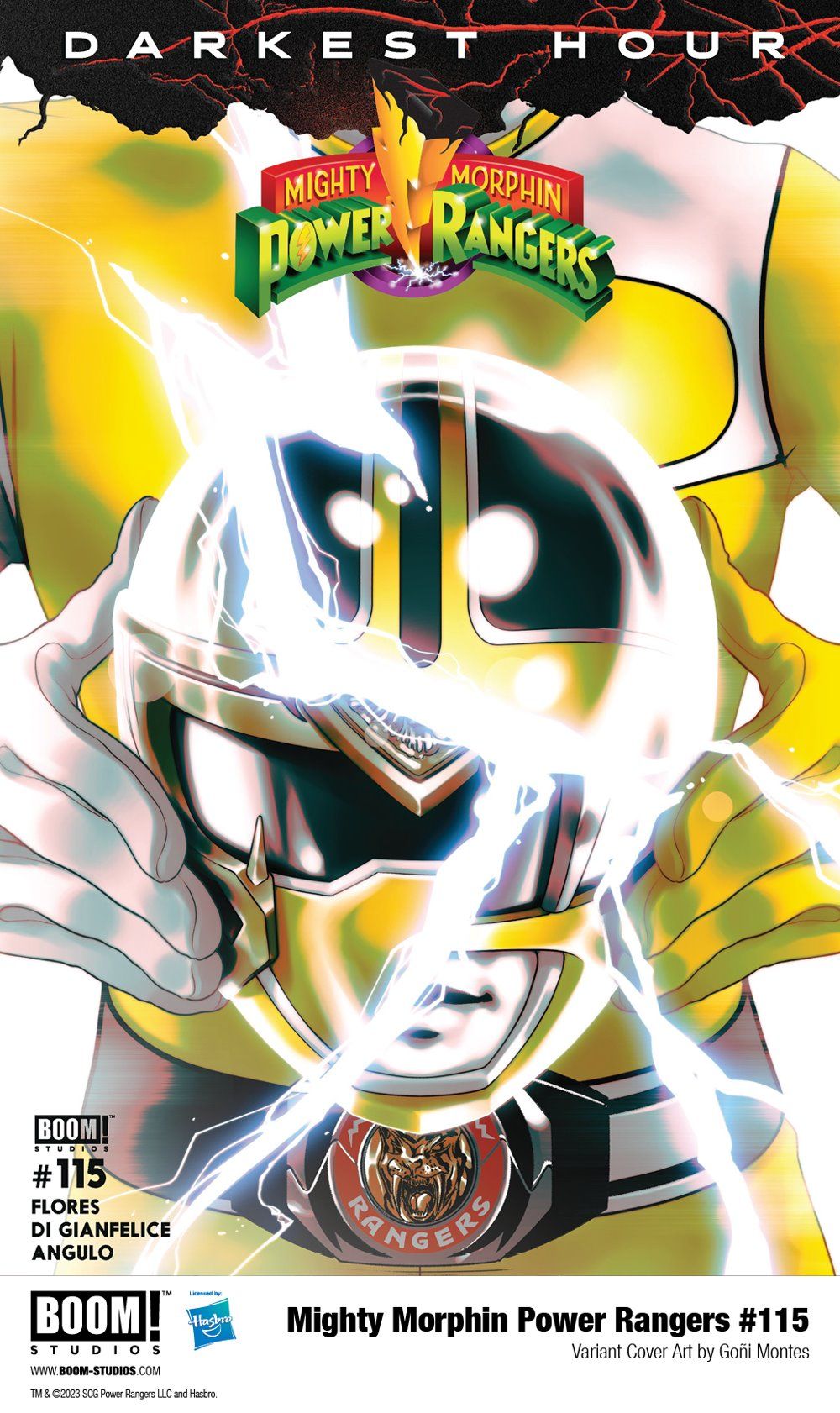 Media Release -- BOOM! Studios, under license by leading toy and game company Hasbro, Inc. (NASDAQ: HAS), revealed a first look at MIGHTY MORPHIN POWER RANGERS #115, the continuation of the DARKEST HOUR event, taking place after the bold and greatly anticipated Reunited, Recharged era of Mighty Morphin Power Rangers. The superstar creative lineup includes writer Melissa Flores (Power Rangers, The Dead Lucky), artist Simona Di Gianfelice (All New Firefly), colorist Raúl Angulo (Mech Cadet Yu) with assistance by Jose Enrique Fernández, and letterer Ed Dukeshire (The Woods, Irredeemable) in the continuation of this monumental 12-month event, available in December.