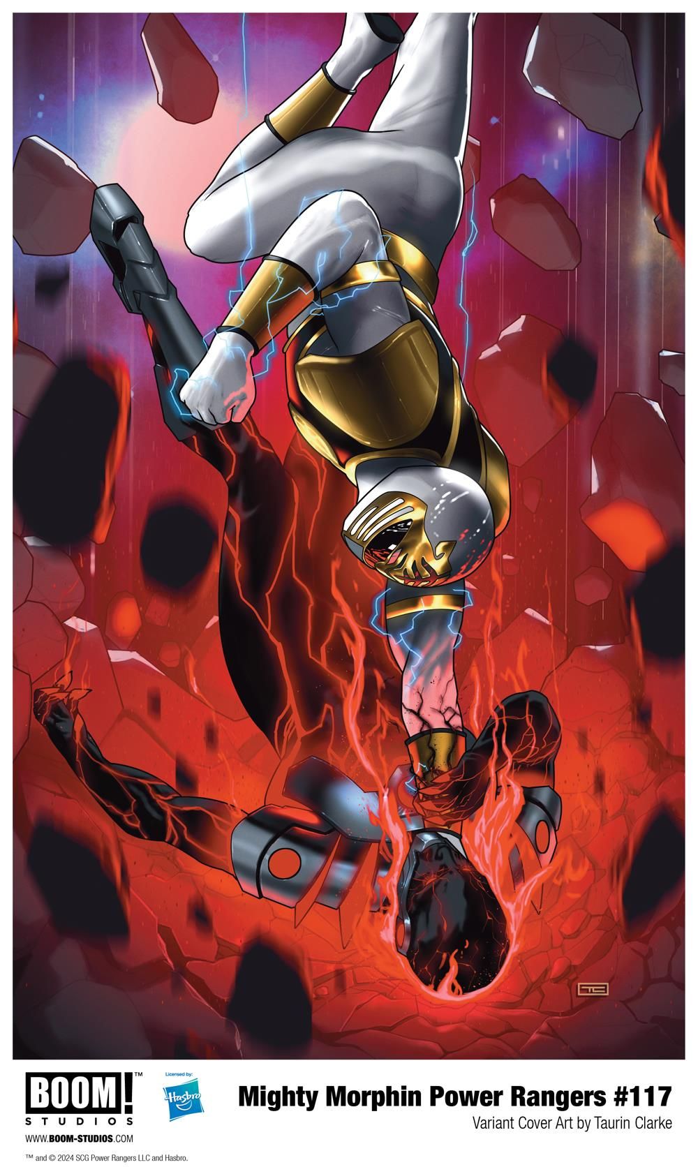 MIGHTY MORPHIN POWER RANGERS #117 features main cover art by star artist Taurin Clarke (Miles Morales: Spider-Man) and variant covers by acclaimed illustrators Björn Barends (Spawn), Goñi Montes (Mighty Morphin Power Rangers), and the first of three connecting covers by Michael Walsh (The Silver Coin)!