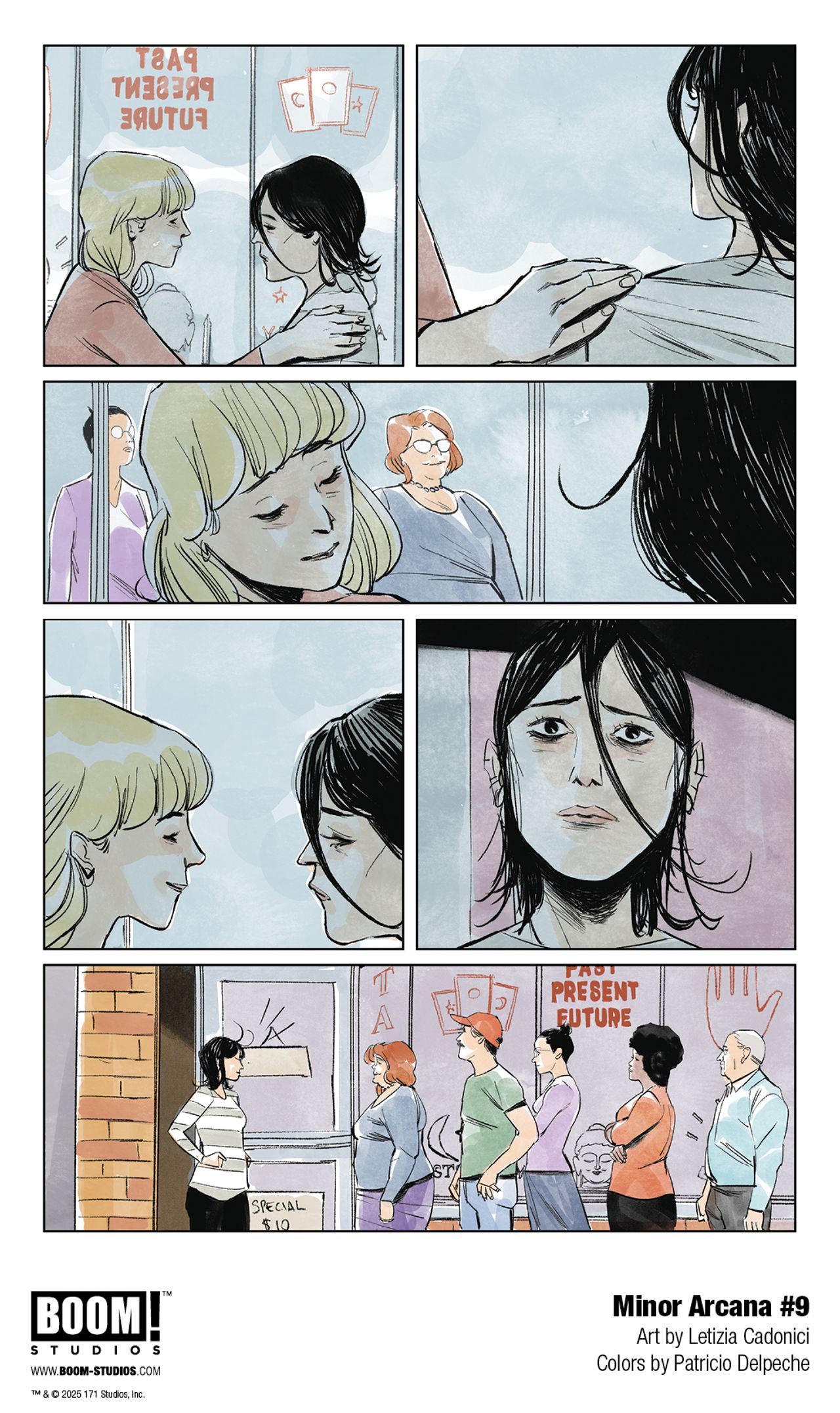 MINOR ARCANA #9 will be available in comic shops July 23, 2025. It is available for pre-order at your local comic shop. Digital copies can be purchased from content providers, including Kindle, iBooks, and Google Play.