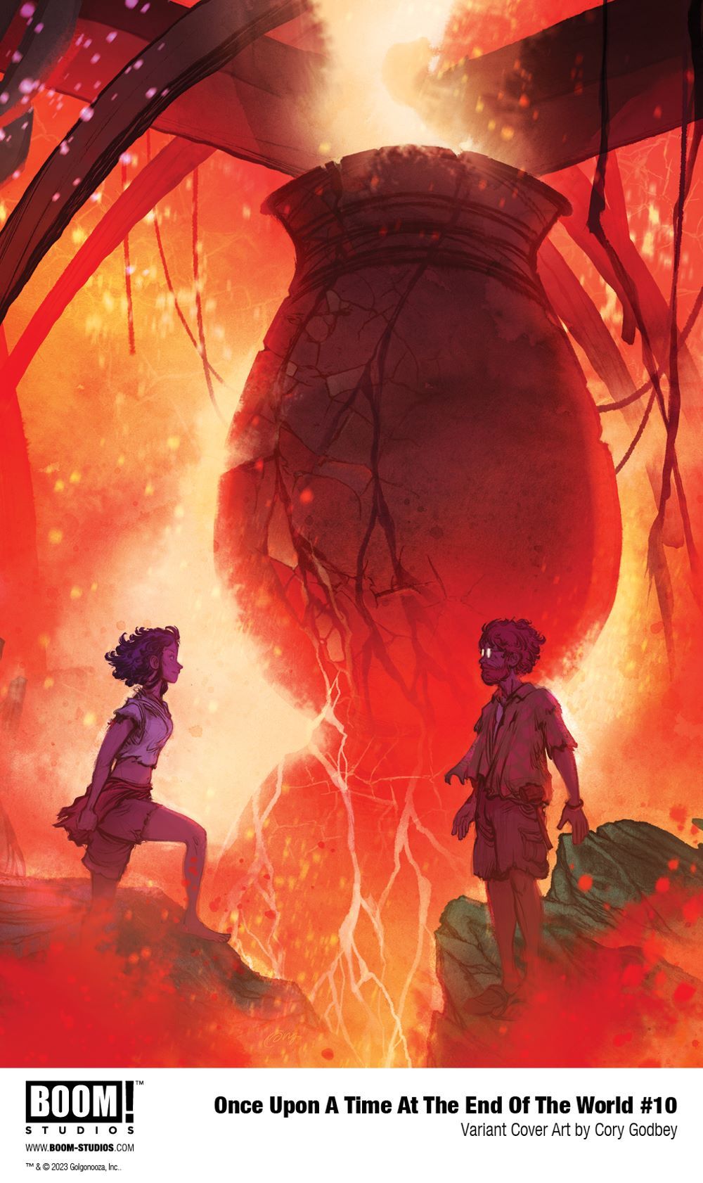 ONCE UPON A TIME AT THE END OF THE WORLD #10 features main and variant cover art by highly acclaimed illustrator Kevin Wada (Specs), and variant cover art by famed artists Cory Godbey (Jim Henson's The Storyteller: Sirens), Yanick Paquette (Wonder Woman), and Tula Lotay (Something is Killing the Children).