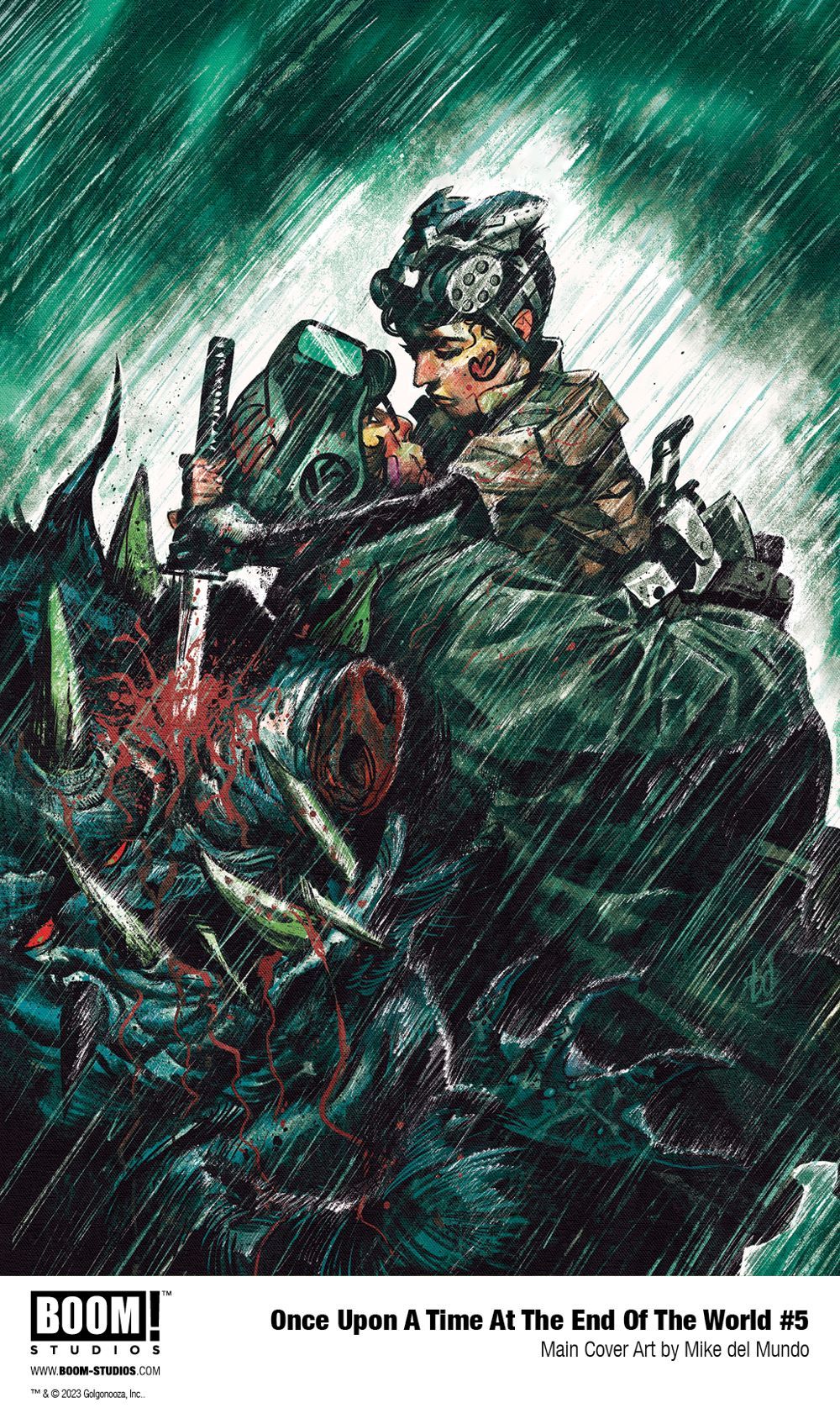 ONCE UPON A TIME AT THE END OF THE WORLD is the newest release from BOOM! Studios' eponymous imprint, home to critically acclaimed original series, including BRZRKR by Keanu Reeves, Matt Kindt, and Ron Garney; Something is Killing the Children by James Tynion IV and Werther Dell'Edera; Once & Future by Kieron Gillen and Dan Mora; Eve by Victor LaValle and Jo Mi-Gyeong; The Many Deaths of Laila Starr by Ram V and Filipe Andrade; Wynd by James Tynion IV and Michael Dialynas; Grim by Stephanie Phillips and Flaviano; Briar by Christopher Cantwell and Germán García; Stuff of Nightmares by R.L. Stine and A.L. Kaplan; The Approach by Jeremy Haun, Jason A. Hurley, and Jesus Hervas; Damn Them All by Simon Spurrier and Charlie Adlard; Behold, Behemoth by Tate Brombal and Nick Robles; Specs by David M. Booher and Chris Shehan; Know Your Station by Sarah Gailey and Liana Kangas; A Vicious Circle by Mattson Tomlin and Lee Bermejo; Mosely by Rob Guillory and Sam Lotfi; Harrower by Justin Jordan and Brahm Revel; The Neighbors by Jude Ellison S. Doyle and Letizia Cadonici; and the upcoming The Seasons Have Teeth by Dan Watters and Sebastián Cabrol. The imprint also publishes popular licensed properties, including Dune: House Harkonnen from Brian Herbert, Kevin J. Anderson, and Michael Shelfer; Mighty Morphin Power Rangers from Melissa Flores and Simona Di Gianfelice; Magic from Jed McKay, Rich Douek, and Ig Guara; and The Expanse: Dragon Tooth by Andy Diggle and Rubine.