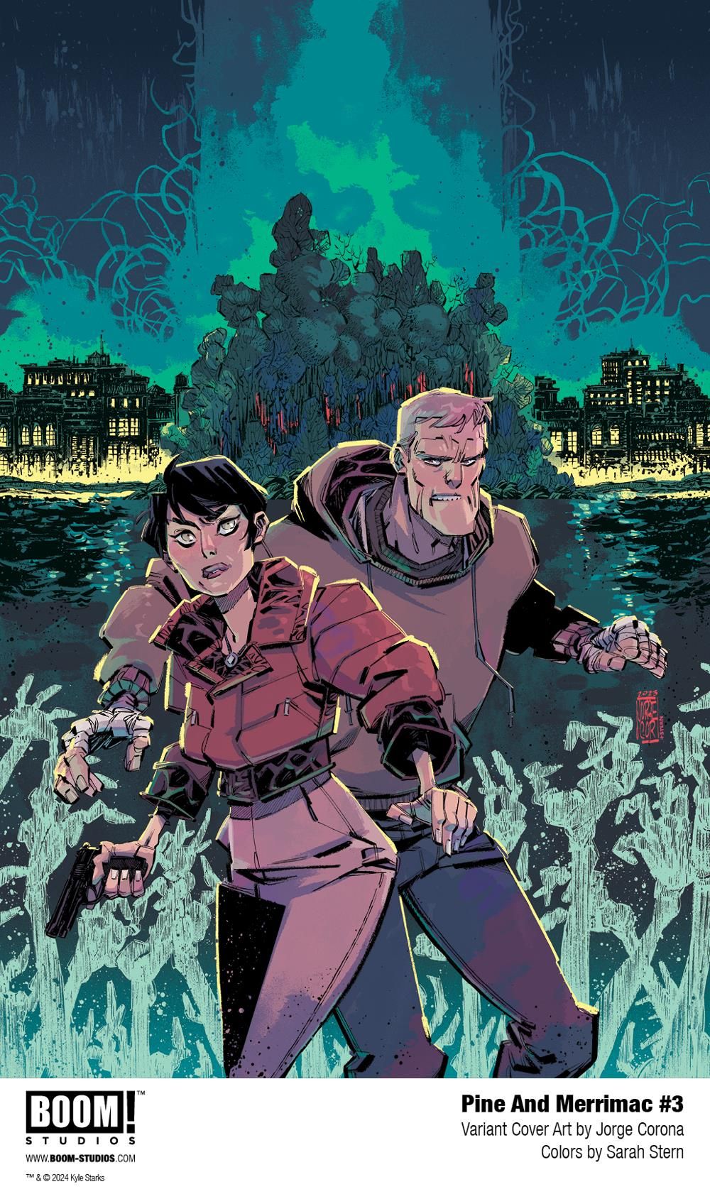PINE AND MERRIMAC is the newest release from BOOM! Studios' eponymous imprint, home to critically acclaimed original series, including BRZRKR by Keanu Reeves, Matt Kindt, and Ron Garney; Something is Killing the Children by James Tynion IV and Werther Dell'Edera; Grim by Stephanie Phillips and Flaviano; Stuff of Nightmares by R.L. Stine and A.L. Kaplan; Damn Them All by Simon Spurrier and Charlie Adlard; Once Upon a Time at the End of the World by Jason Aaron, Alexandre Tefenkgi, Leila del Duca, and Nick Dragotta; Know Your Station by Sarah Gailey and Liana Kangas; A Vicious Circle by Mattson Tomlin and Lee Bermejo; The Neighbors by Jude Ellison S. Doyle and Letizia Cadonici; Ghostlore by Cullen Bunn and Leomacs; Sirens of the City by Joanne Starer and Khary Randolph; Coda by Simon Spurrier and Matías Bergara; Rare Flavours by Ram V and Filipe Andrade; Underheist by David and Maria Lapham; and Animal Pound by Tom King and Peter Gross. The imprint also publishes popular licensed properties, including Dune: House Harkonnen from Brian Herbert, Kevin J. Anderson, and Michael Shelfer; Mighty Morphin Power Rangers by Melissa Flores and Simona Di Gianfelice; and The Expanse: Dragon Tooth by Andy Diggle and Rubine.