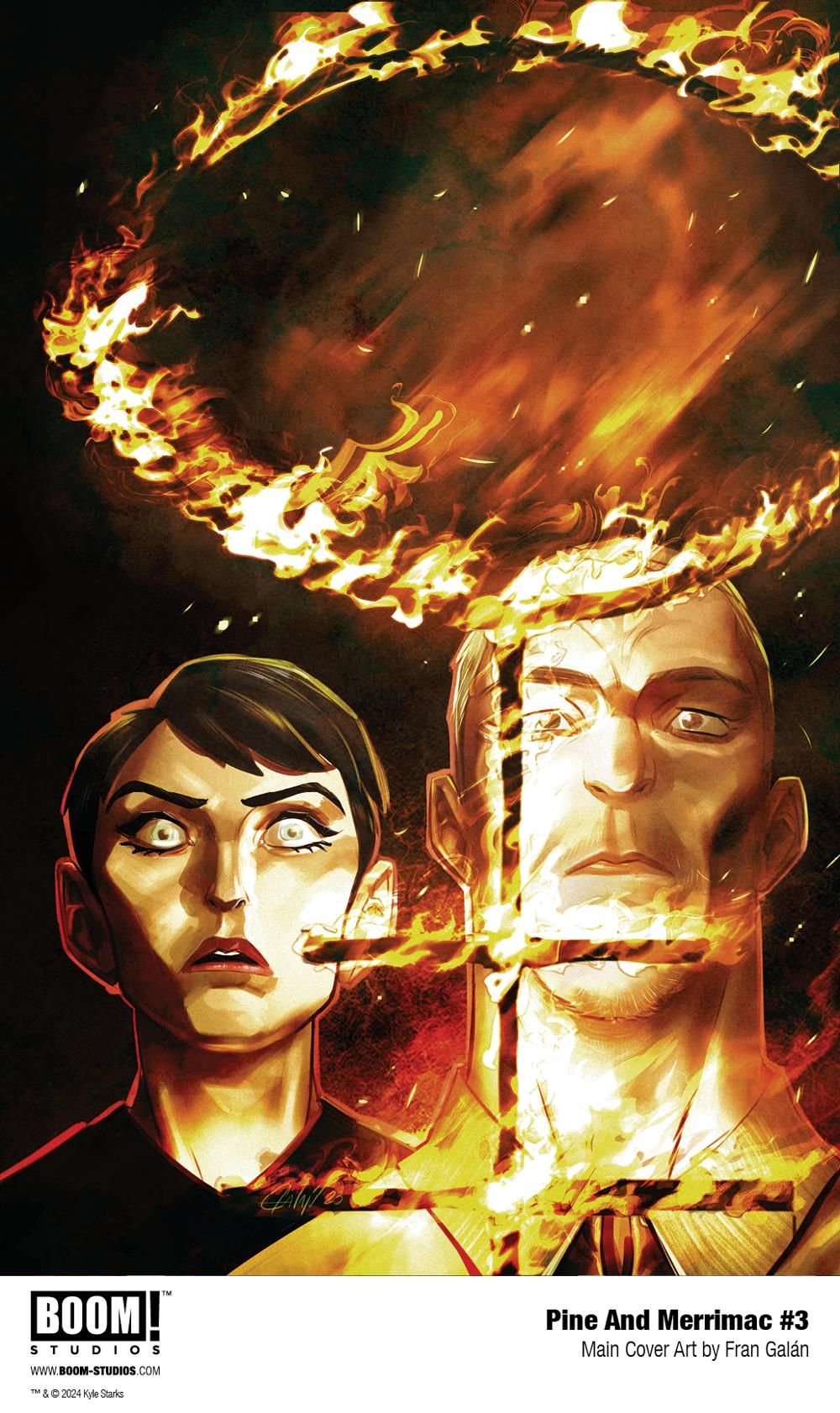 Media Release -- BOOM! Studios today revealed a first look at PINE AND MERRIMAC #3 from Eisner-award nominated writer Kyle Starks (I Hate This Place), fan-favorite artist and co-creator Fran Galán (The Amazing Spider-Man) and letterer Pat Brosseau (Batman: The Knight). A new detective tale arrives in comic stores in March 2024.