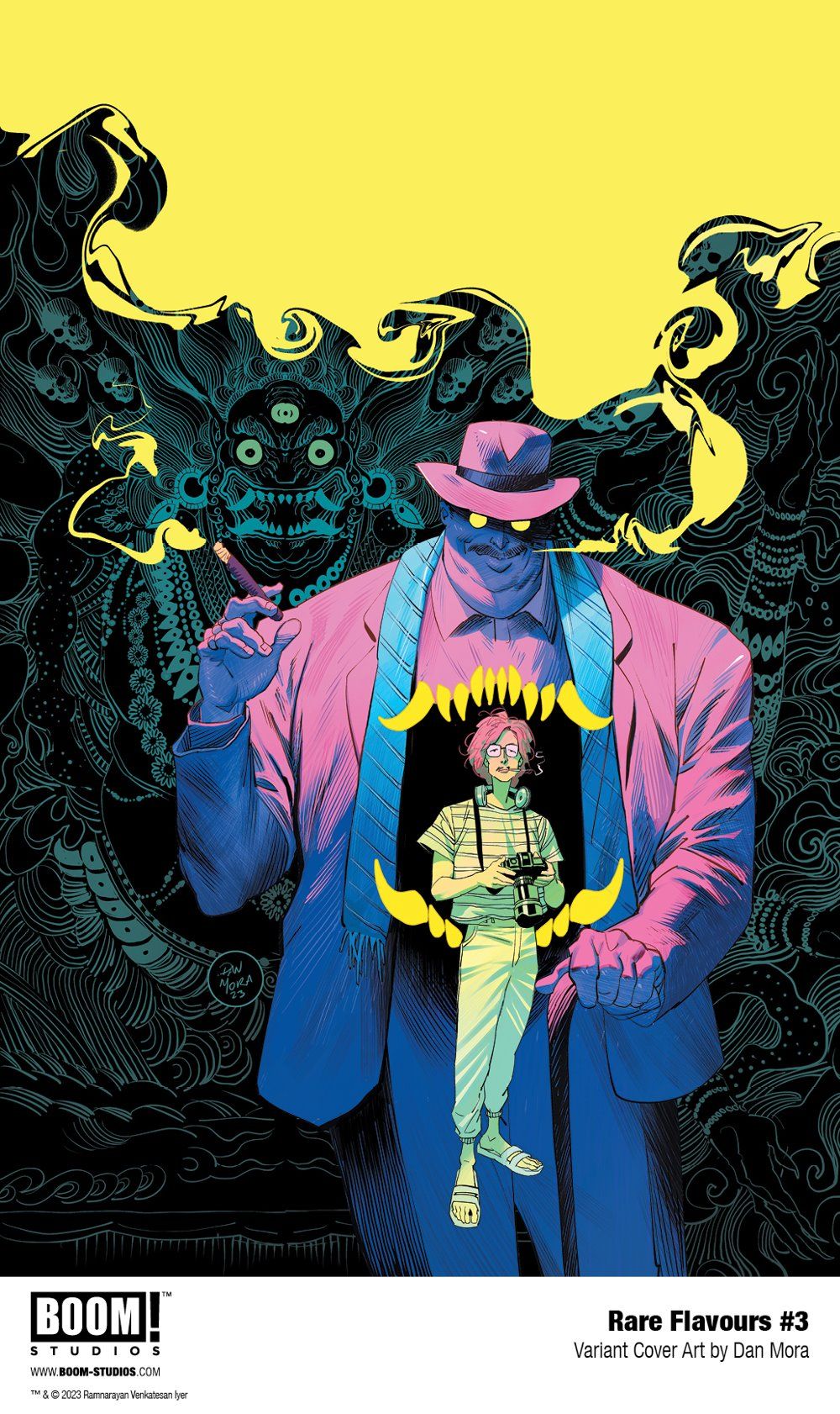 RARE FLAVOURS is the newest release from BOOM! Studios' eponymous imprint, home to critically acclaimed original series, including BRZRKR by Keanu Reeves, Matt Kindt, and Ron Garney; Something is Killing the Children by James Tynion IV and Werther Dell'Edera; Grim by Stephanie Phillips and Flaviano; Stuff of Nightmares by R.L. Stine and A.L. Kaplan; Damn Them All by Simon Spurrier and Charlie Adlard; Once Upon a Time at the End of the World by Jason Aaron, Alexandre Tefenkgi, Leila del Duca, and Nick Dragotta; Know Your Station by Sarah Gailey and Liana Kangas; A Vicious Circle by Mattson Tomlin and Lee Bermejo; The Neighbors by Jude Ellison S. Doyle and Letizia Cadonici; Ghostlore by Cullen Bunn and Leomacs; Sirens of the City by Joanne Starer and Khary Randolph; Coda by Simon Spurrier and Matías Bergara; Rare Flavours by Ram V and Filipe Andrade, and the upcoming Underheist by David and Maria Lapham. The imprint also publishes popular licensed properties, including Dune: House Harkonnen from Brian Herbert, Kevin J. Anderson, and Michael Shelfer; Mighty Morphin Power Rangers by Melissa Flores and Simona Di Gianfelice; and The Expanse: Dragon Tooth by Andy Diggle and Rubine.