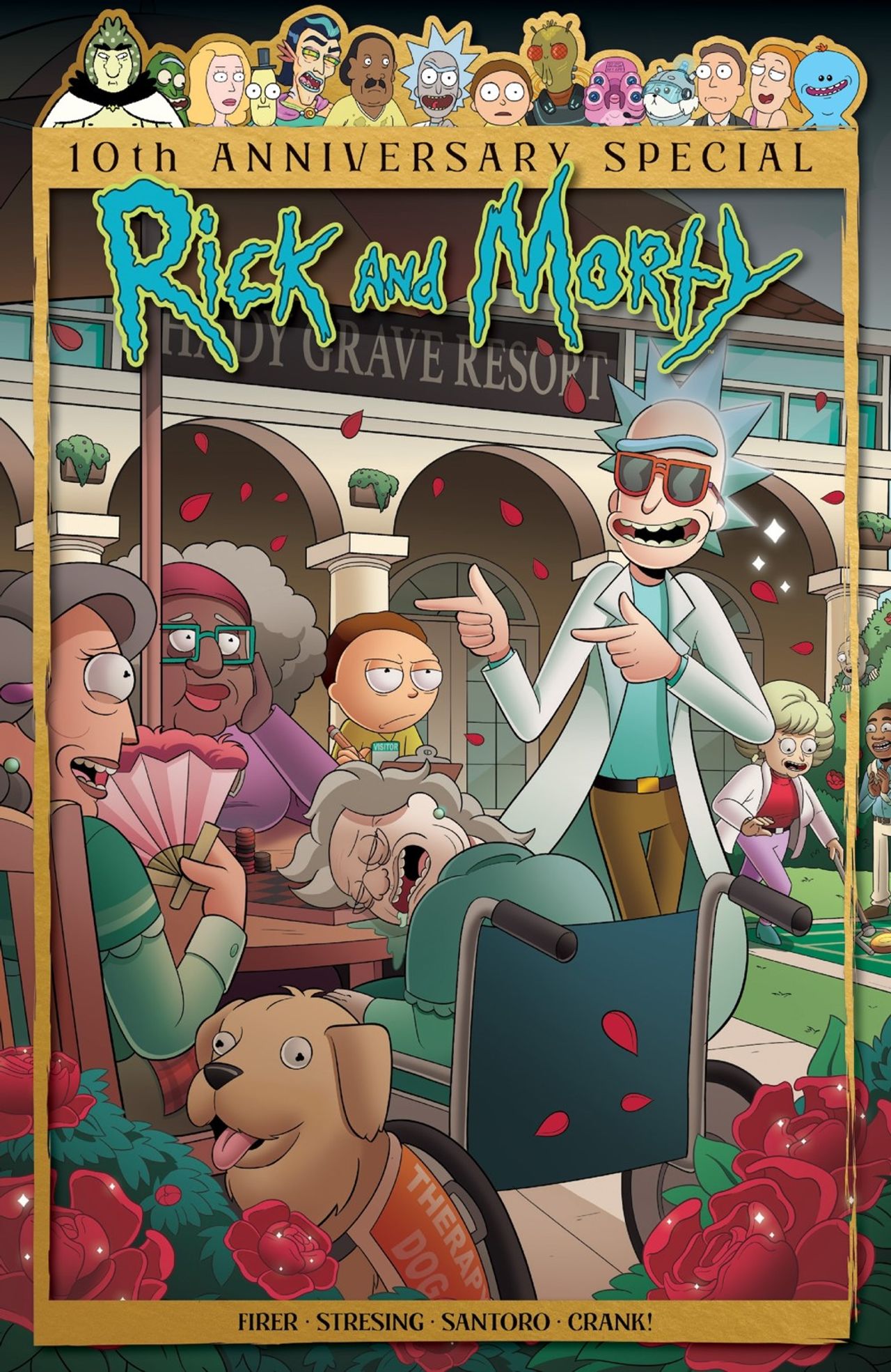Media Release -- What better way to celebrate a whole decade of grandparental antics, disorderly schwifty-ing, and never-ending nihilistic cosmic chaos than in the 64-page, ginormous RICK AND MORTY: 10th ANNIVERSARY SPECIAL #1 from Oni Press in collaboration with Warner Bros. Discovery Global Consumer Products! From Rick and Morty veterans Alex Firer (The Onion News Network) and Fred C. Stresing (Adventure Time), A TRIPLE-SIZED, SQUAREBOUND SPECTACULAR featuring a cast of thousands as they officially commemorate all the best (and worst) parts of everyone's favorite intergalactic duo in comic shops throughout the omniverse on July 10th!