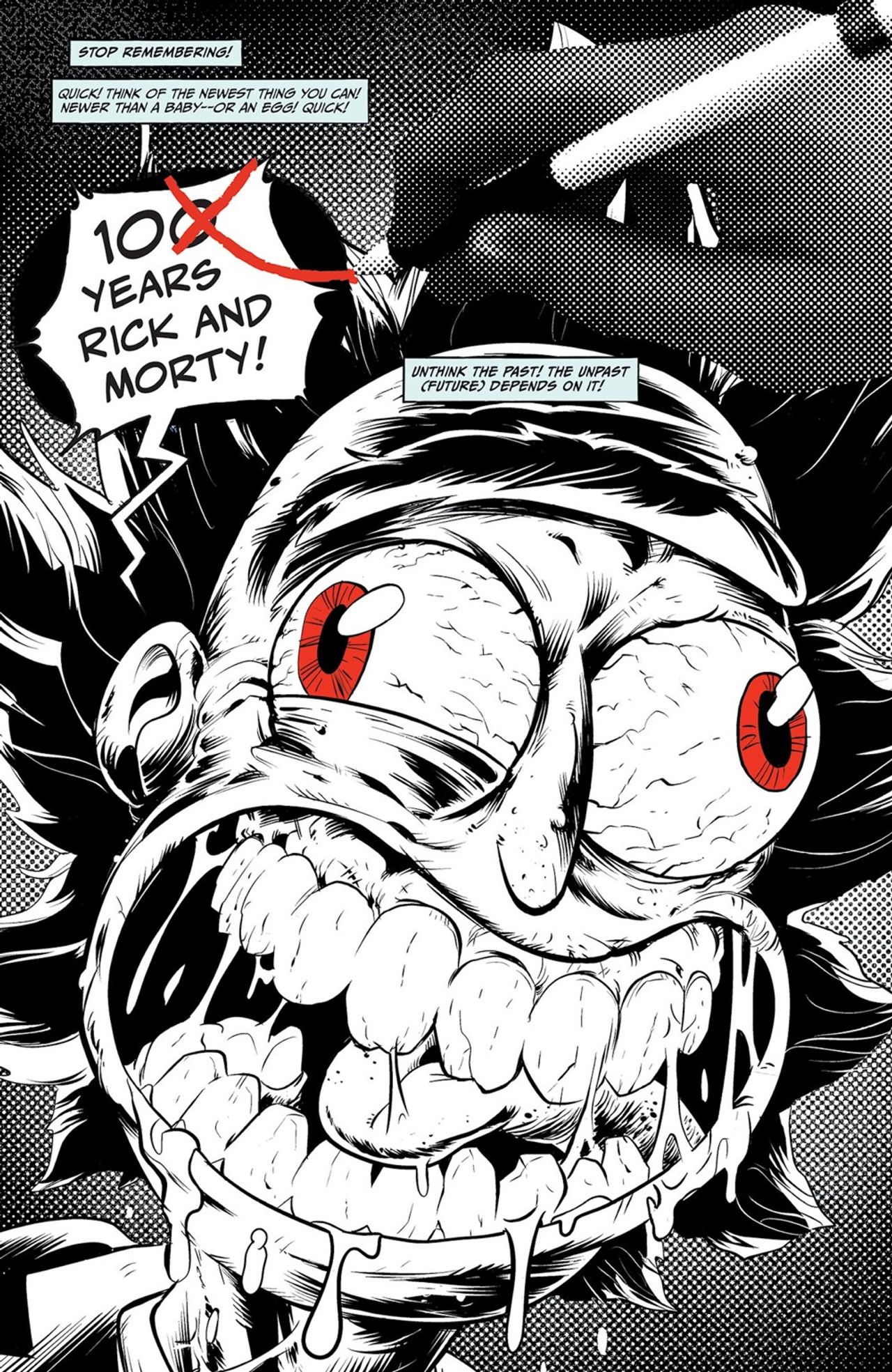 "It's an honor to celebrate the decade of writers and illustrators – TV, comics, the designers of my fine Rick and Morty mug – who made Rick and Morty what it is: inescapable icons of the new century of animation," said writer Alex Firer. "However, this is a comic about Rick cleaning his garage. I know you're all worried it will all go according to plan, but I can't lie to the fans, the most noble people on Earth, you deserve the truth! Things get out of hand!!!"