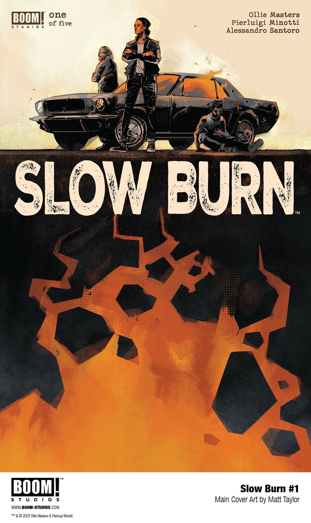 Media Release -- BOOM! Studios today revealed a first look at SLOW BURN #1, the first issue of the brand new series from acclaimed noir crime writer Ollie Masters (Snow Blind), rising star artist Pierluigi Minotti (Lost Falls),colorist Alessandro Santoro, and letterer Hassan Otsmane-Elhaou, a tale about dirty deeds in a town on fire, available October 2023.