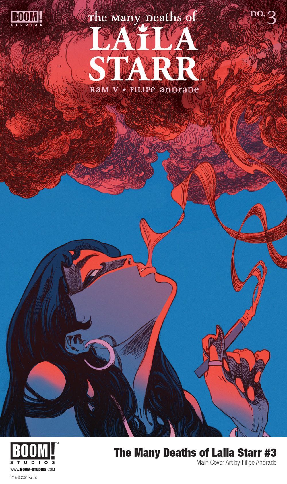Media Release -- BOOM! Studios today revealed a first look at THE MANY DEATHS OF LAILA STARR #3, the third issue in a new original series from acclaimed comics creators Ram V (Swamp Thing, Blue in Green) and Filipe Andrade (Captain Marvel), with letterer AndWorld Design, that explores the fine line between living and dying in Mumbai through the lens of magical realism, available in June 2021.