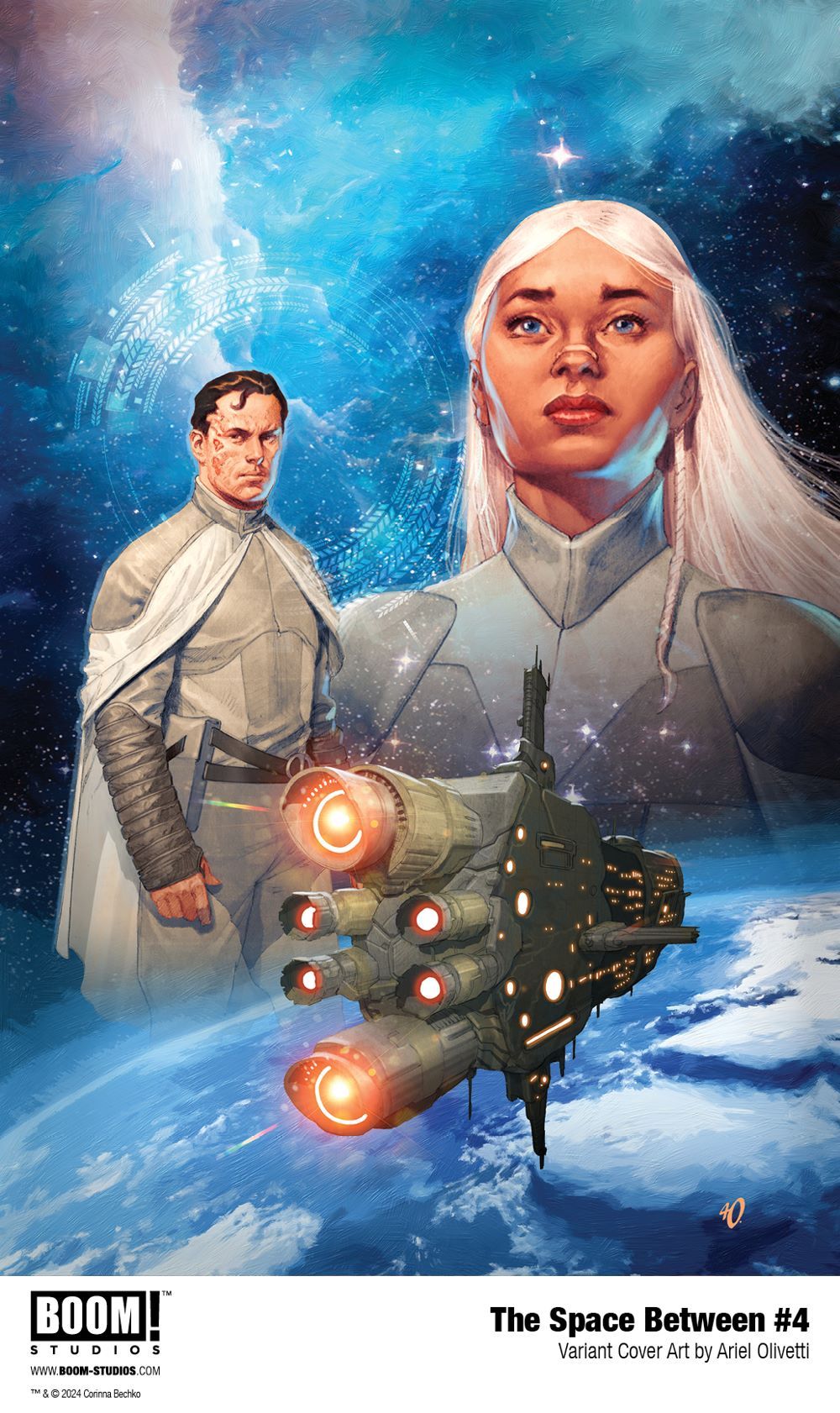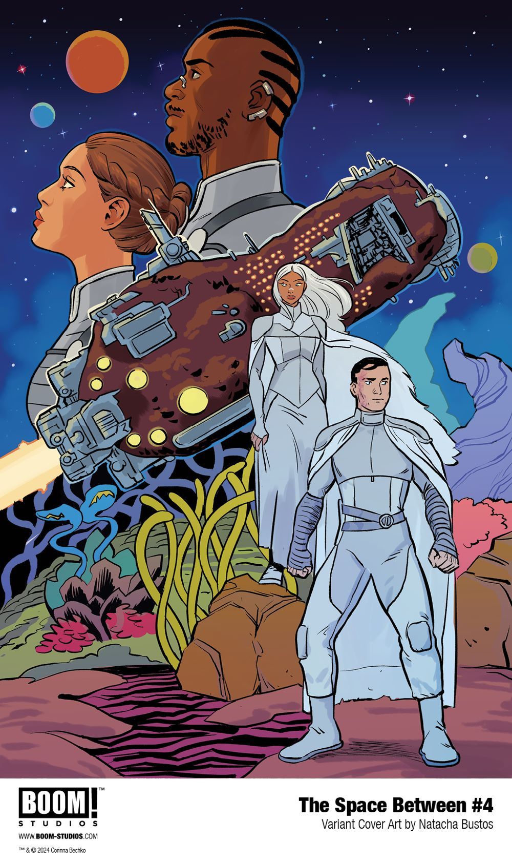 THE SPACE BETWEEN #4 features a main cover by Danny Luckert with variants by artists Natacha Bustos (Mighty Morphin Power Rangers), and Ariel Olivetti (Cable).
