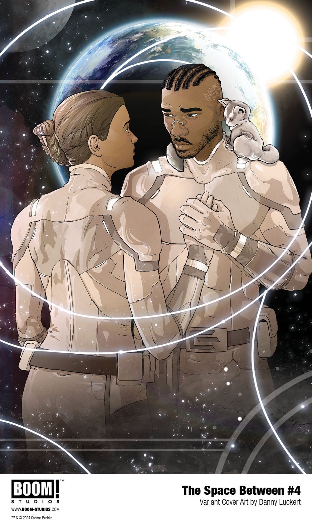 Media Release -- BOOM! Studios today revealed a first look at THE SPACE BETWEEN #4, the FINAL ISSUE in the brand new genre defying story aboard an interstellar generation ship from the minds of Hugo and Eisner nominated and New York Times bestselling writer Corinna Bechko (The Expanse), acclaimed artist Danny Luckert (Ghostlore), and letterer Jim Campbell, available February 2024.