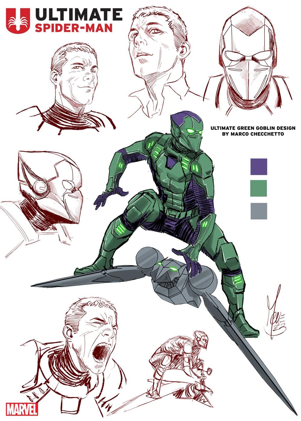 "Throughout our run, expect changes and both classic and new versions of characters," he continued. "One of the first you'll meet is Shocker. He's at the beginning of his career, so I wanted to create something different. Shocker wears a bomb squad suit to protect himself from the powers of his gloves, but still maintains some details of his classic costume. I had a lot of fun, and I believe it helps convey that we are at the dawn of a new storytelling universe. I would also like to talk about the origin of the Green Goblin's design, but I think it's more exciting to let you discover it by reading the fantastic story created by Jonathan!"