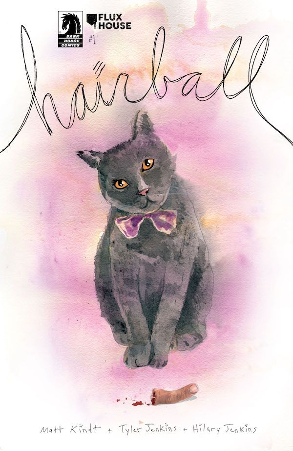 Media Release -- Timed to National Cat Lover's Month, Flux House and Dark Horse Comics are announcing HAIRBALL by bestselling writer Matt Kindt and artist Tyler Jenkins with colors by Hilary Jenkins. In this supernatural thriller from the Eisner-nominated creators of Fear Case and Apache Delivery Service, a dysfunctional family's mounting problems may or may not be caused by an unlikely culprit: the family's cat. This frightening, four-part mini-series is Matt Kindt's latest series with frequent collaborators Tyler Jenkins and Hilary Jenkins.
