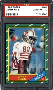 Over the course of his career, #80 would make 13 Pro Bowls, lead the league in receiving yards 6 times and win 3 Super Bowl rings. The 1986 Topps is Rice's only rookie card and sells for top dollar. A PSA 9 copy of the card sells for around $2,300 and a PSA 10 could sell for more than $80K.