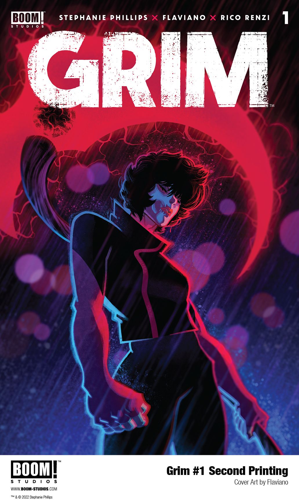 Media Release -- BOOM! Studios has announced today that GRIM #1, the premier issue of the new ongoing comic book series from acclaimed writer Stephanie Phillips (Harley Quinn, Wonder Woman), fan favorite artist Flaviano (New Mutants), colorist Rico Renzi (Spider-Gwen), and letterer Tom Napolitano (The Joker), has sold out at the distributor level! The debut issue, about a young woman with a macabre job and a mysterious death to solve, is the publisher's highest ordered creator-owned series of 2022.