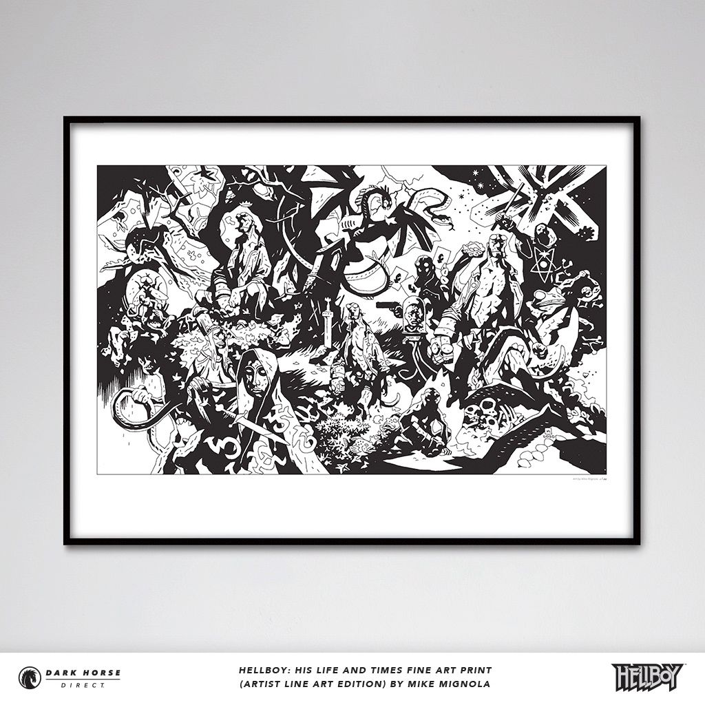 "HELLBOY: HIS LIFE AND TIMES Artist Line Art Edition takes you on a visual journey, capturing some of the most memorable moments from Seed of Destruction through Hellboy in Hell," said Melissa Lomax, Dark Horse Direct Director of eCommerce. "This is a perfect display piece for any Hellboy fan's collection, and will only be available from Dark Horse Direct. Because of the expected demand for the print, we're capping orders at two per person." The HELLBOY: HIS LIFE AND TIMES fine art print is expected to ship to customers by May 2021.