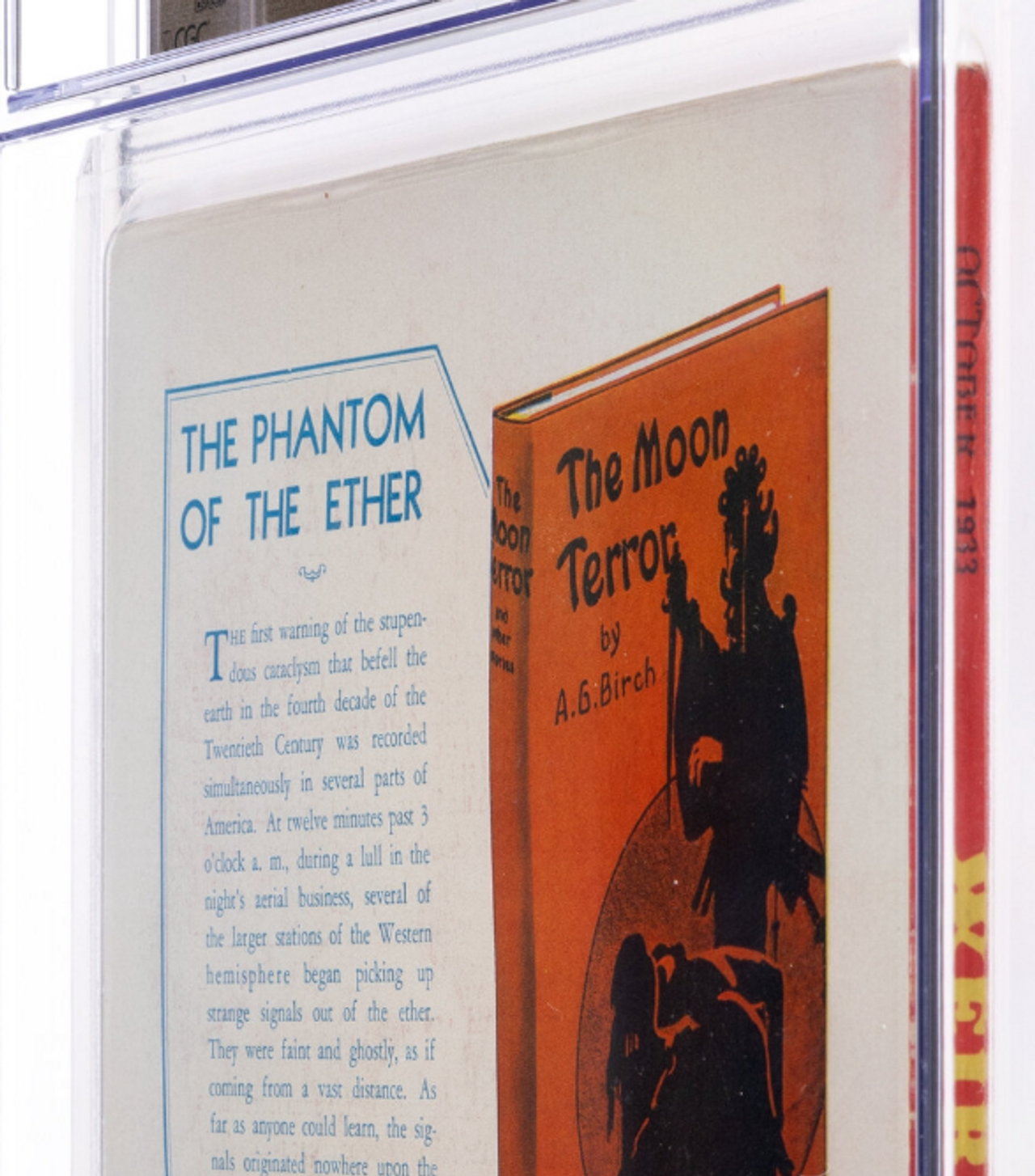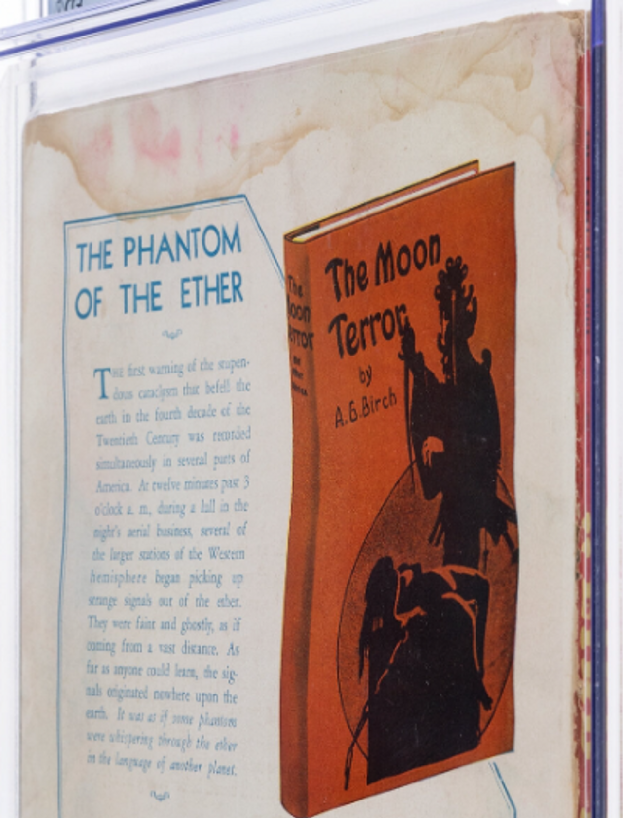 This 3.5 grade is what you’re most likely to come across when searching for pulps. This copy sold on October 23, 2025 for $3,720. It shows much of the deterioration you’ll see in pulps including light tan to off-white pages. Because most pulps weren’t stored with great care by the average 1930s to 1950s reader (if they weren’t just thrown away), its flaws are typical of what a collector will find in a stack of pulps in a shop or show.