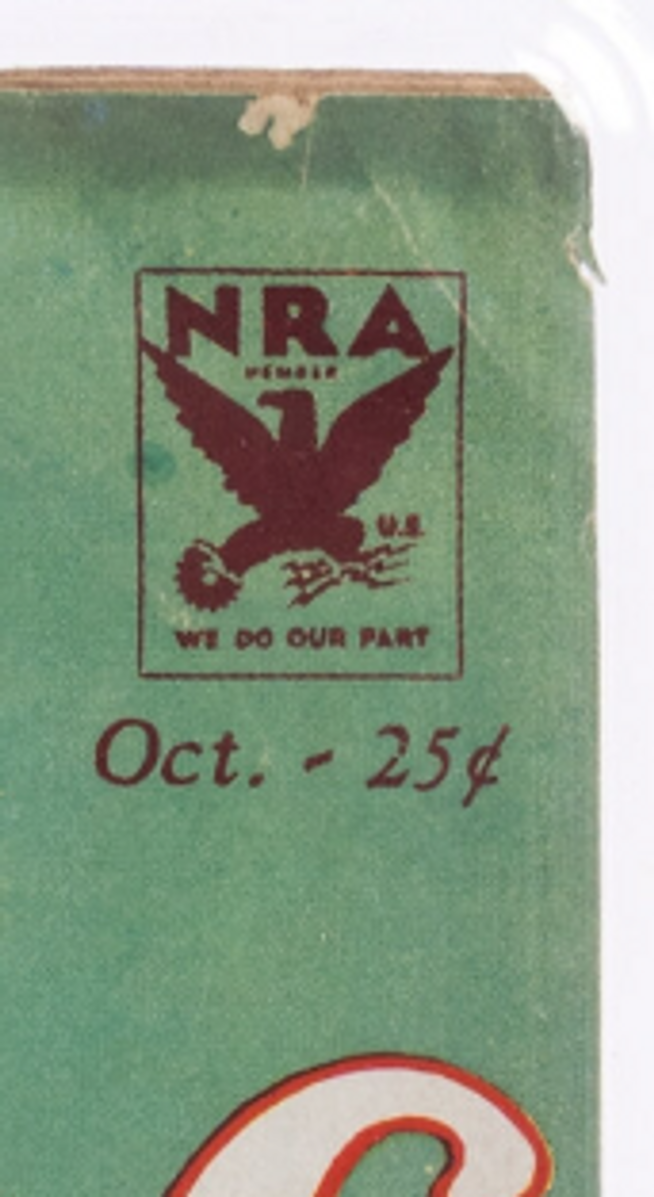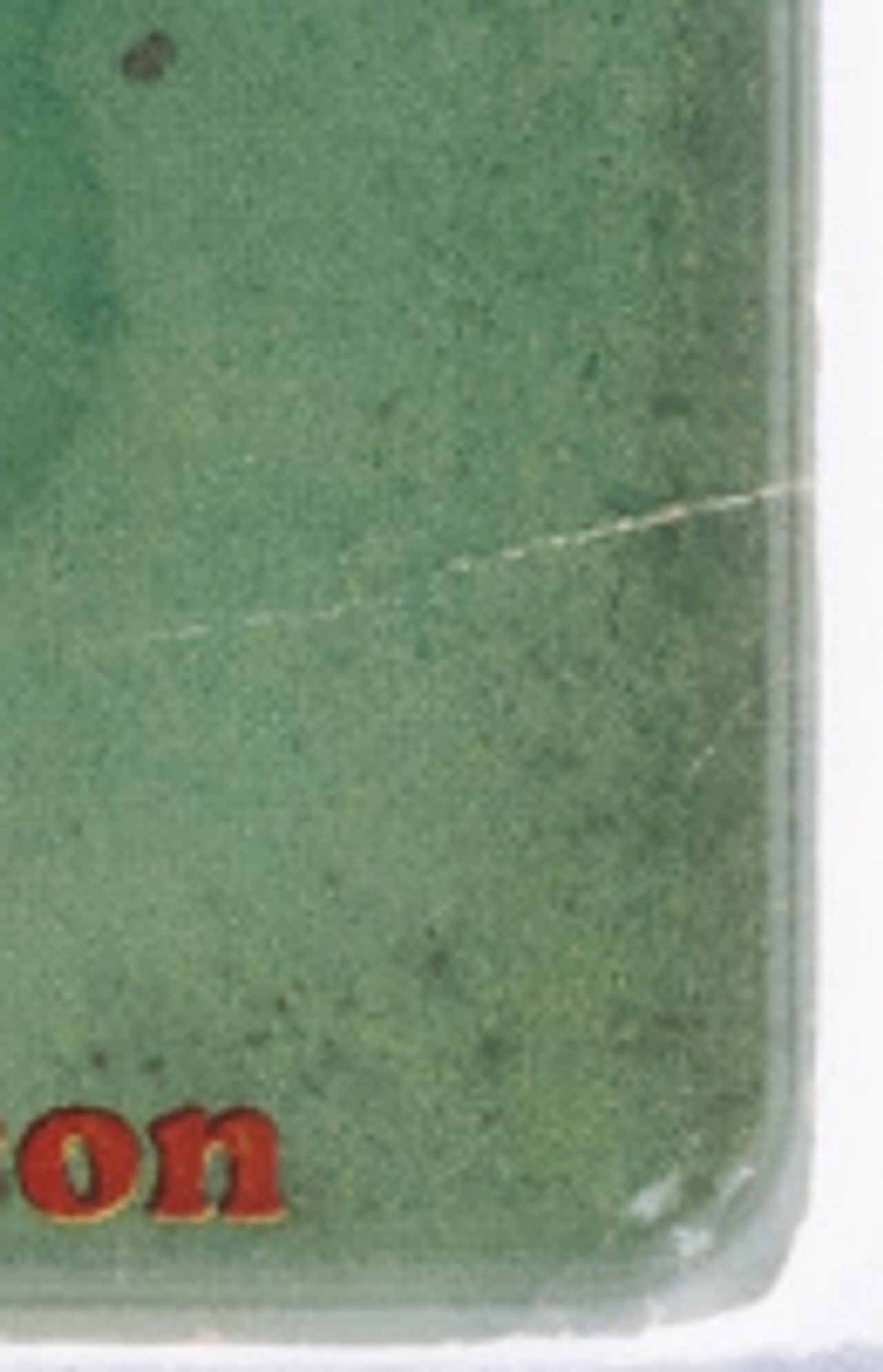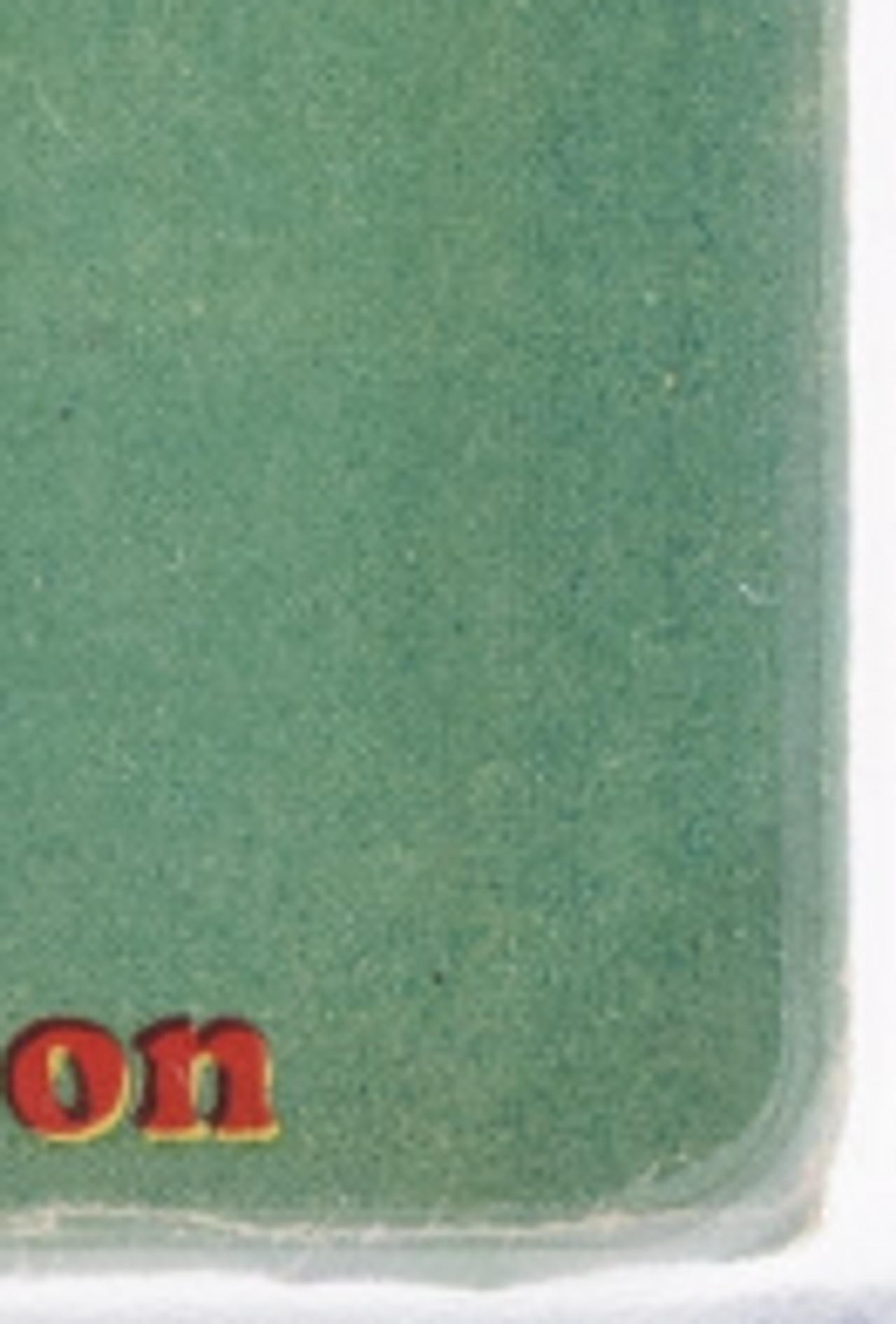 The top edge, while not quite as bad as the stain seen in the 3.5, has more signs of overhang stress, including chipping and tearing. The upper right corner is severely blunted and creased and there are quite pronounced tears in the upper left. The overhang line is more than apparent, and you clearly see why that is one of the weak points of the pulp printing process in this copy.