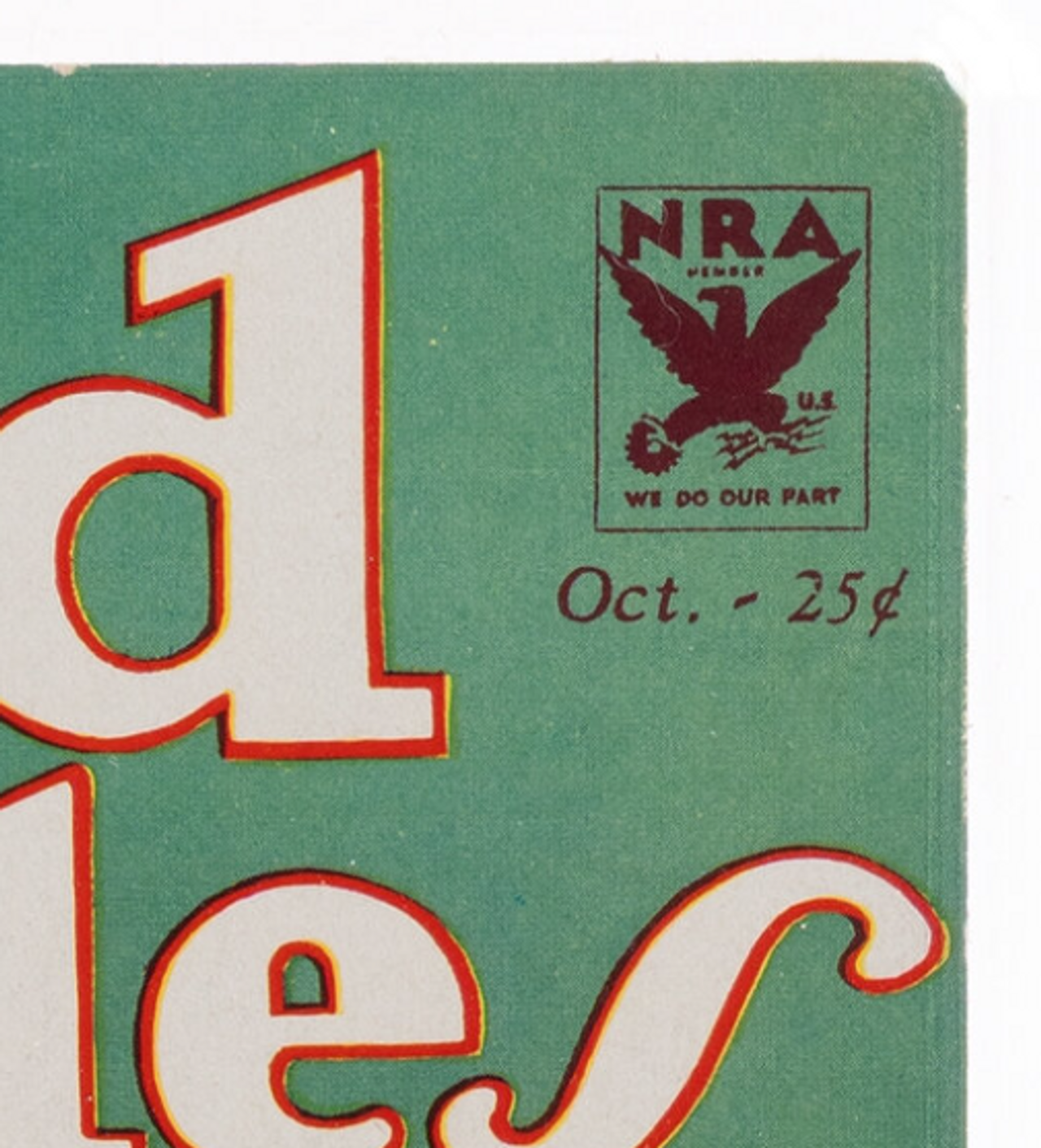 The top of the cover is in nice shape. While there is some blunting in the corners and a little wear along the top edge, this is about as nice as a 1930s era pulp can look.