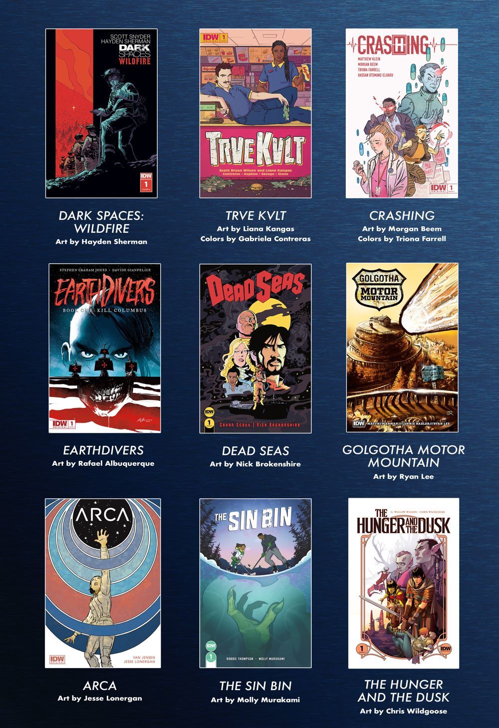 IDW has announced nine new original series, beginning in 2022, featuring Scott Snyder, G. Willow Wilson, Stephen Graham Jones, John Ridley, and more.
