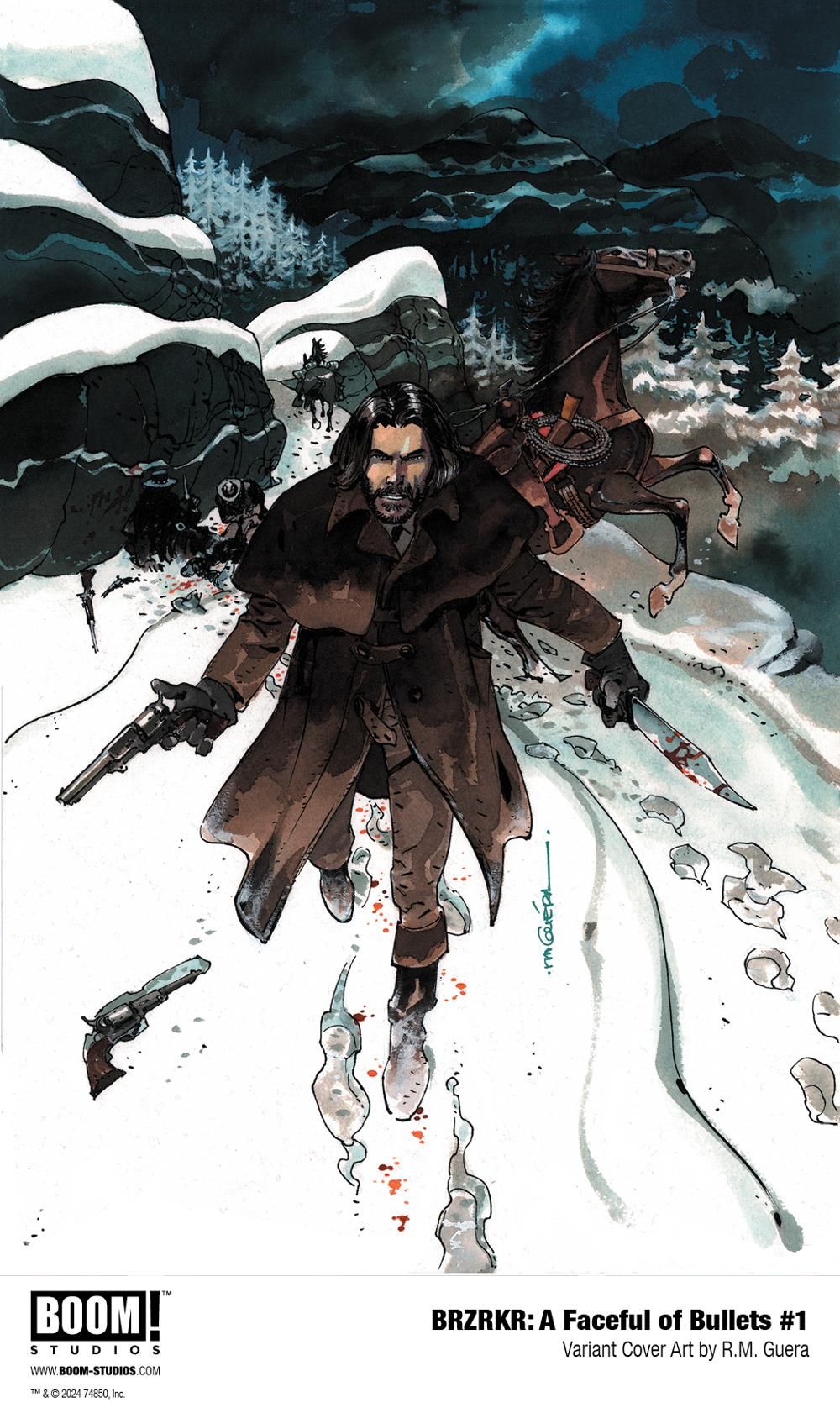 BRZRKR: A FACEFUL OF BULLETS is the newest release from BOOM! Studios' eponymous imprint, home to critically acclaimed original series, including BRZRKR by Keanu Reeves, Matt Kindt, and Ron Garney; Something is Killing the Children by James Tynion IV and Werther Dell'Edera; Grim by Stephanie Phillips and Flaviano; Stuff of Nightmares by R.L. Stine and A.L. Kaplan; Damn Them All by Simon Spurrier and Charlie Adlard; Once Upon a Time at the End of the World by Jason Aaron, Alexandre Tefenkgi, Leila del Duca, and Nick Dragotta; Know Your Station by Sarah Gailey and Liana Kangas; A Vicious Circle by Mattson Tomlin and Lee Bermejo; The Neighbors by Jude Ellison S. Doyle and Letizia Cadonici; Ghostlore by Cullen Bunn and Leomacs; Sirens of the City by Joanne Starer and Khary Randolph; Coda by Simon Spurrier and Matías Bergara; Rare Flavours by Ram V and Filipe Andrade; Underheist by David and Maria Lapham; and Animal Pound by Tom King and Peter Gross. The imprint also publishes popular licensed properties, including Dune: House Harkonnen from Brian Herbert, Kevin J. Anderson, and Michael Shelfer; Mighty Morphin Power Rangers by Melissa Flores and Simona Di Gianfelice; and The Expanse: Dragon Tooth by Andy Diggle and Rubine.