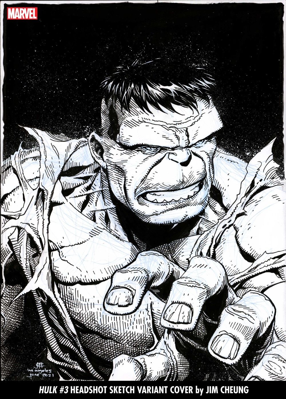 HULK #3 HEADSHOT SKETCH VARIANT COVER by JIM CHEUNG