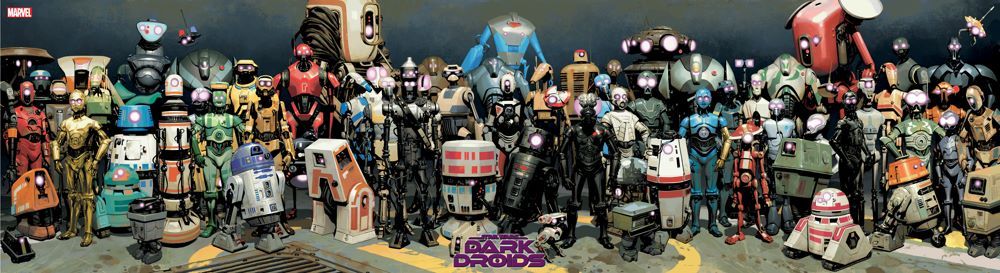 The highly-anticipated epic will be told across a main event series, STAR WARS: DARK DROIDS, as well as tie-in issues of four ongoing series that are currently bridging the gap between the films The Empire Strikes Back and Return of the Jedi: STAR WARS, STAR WARS: DARTH VADER, STAR WARS: DOCTOR APHRA, and STAR WARS: BOUNTY HUNTERS. Announced last week on StarWars.com, the event will also include a spinoff series, STAR WARS: DARK DROIDS – D-SQUAD. Written by Marc Guggenheim with art by Salva Espín and David Messina, the four-issue limited series will see R2-D2 reunite with his team of droid heroes to combat the menace that's dominating their kind.