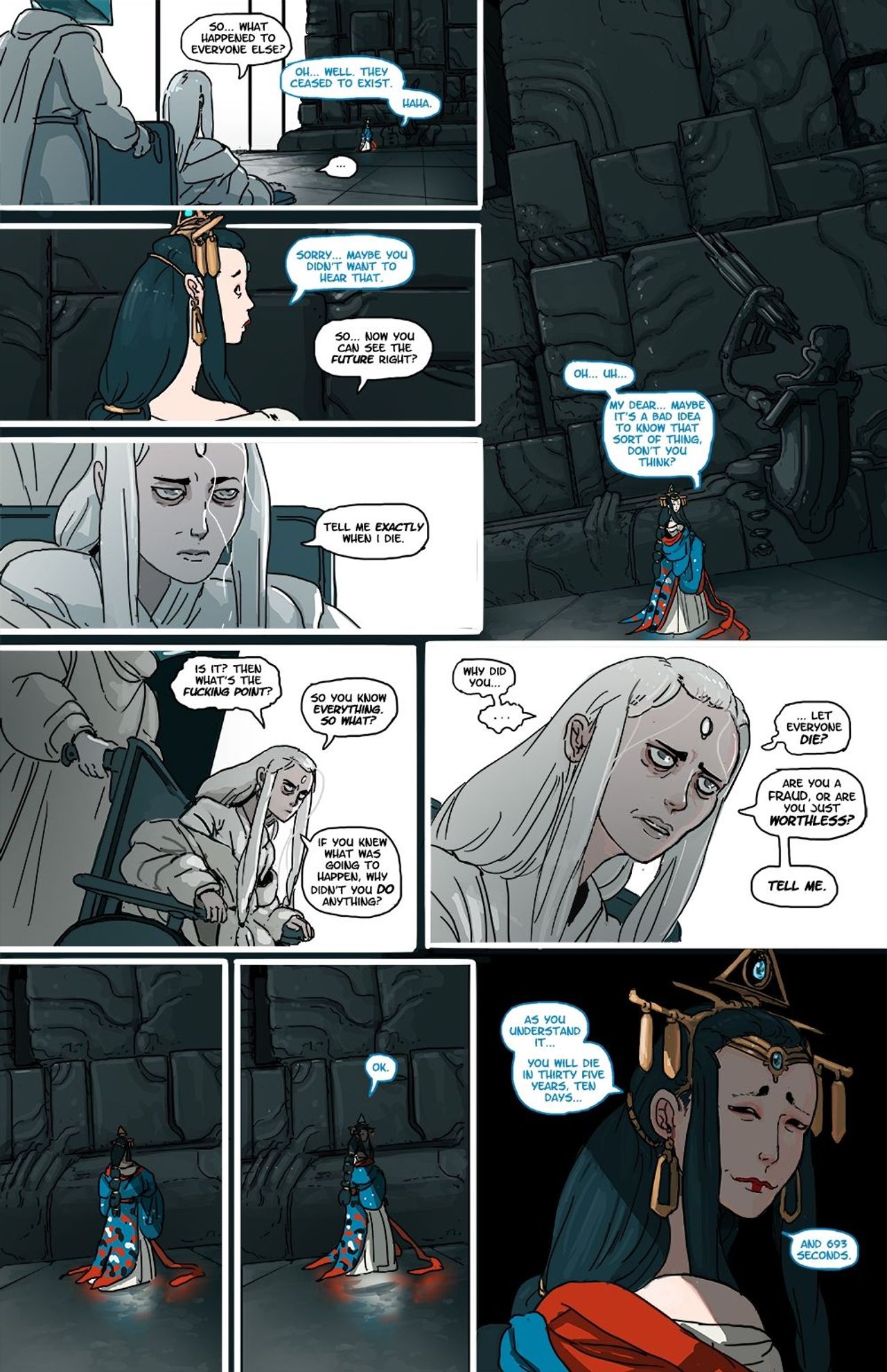 In the fifth chapter of this series—adapted for print from the successful webcomic Kill 6 Billion Demons—sorority sister Allison Ruth has seen it all. Ripped away from her comfortable and mundane life to Throne—the multiversal metropolis at the center of all worlds—she has been unwittingly swept up in an ancient feud between tyrannical god-kings and become the host of a power she can neither understand nor control. She has broken into the grand palace of the Blood Flower, plunged the depths of the vault of the grand dragon Mammon, and fought tooth-and-nail in god-emperor Solomon's interdimensional martial arts tournament.