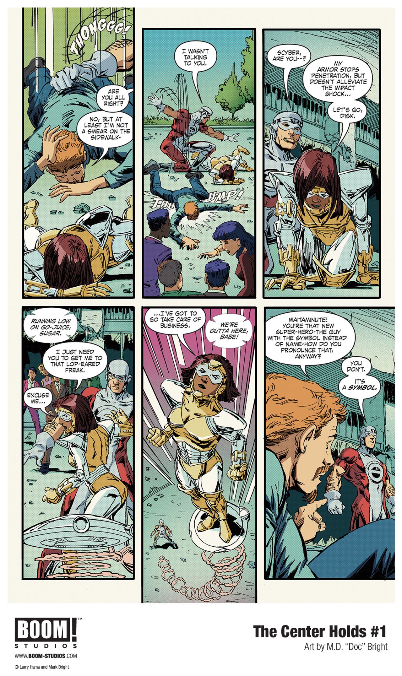Media Release -- Legendary writer Larry Hama and the late M.D. “Doc” Bright’s final work is presented for the first time at BOOM! Studios in THE CENTER HOLDS! A superhero series that questions the very nature of what it means to be a hero in a giant-sized first issue!