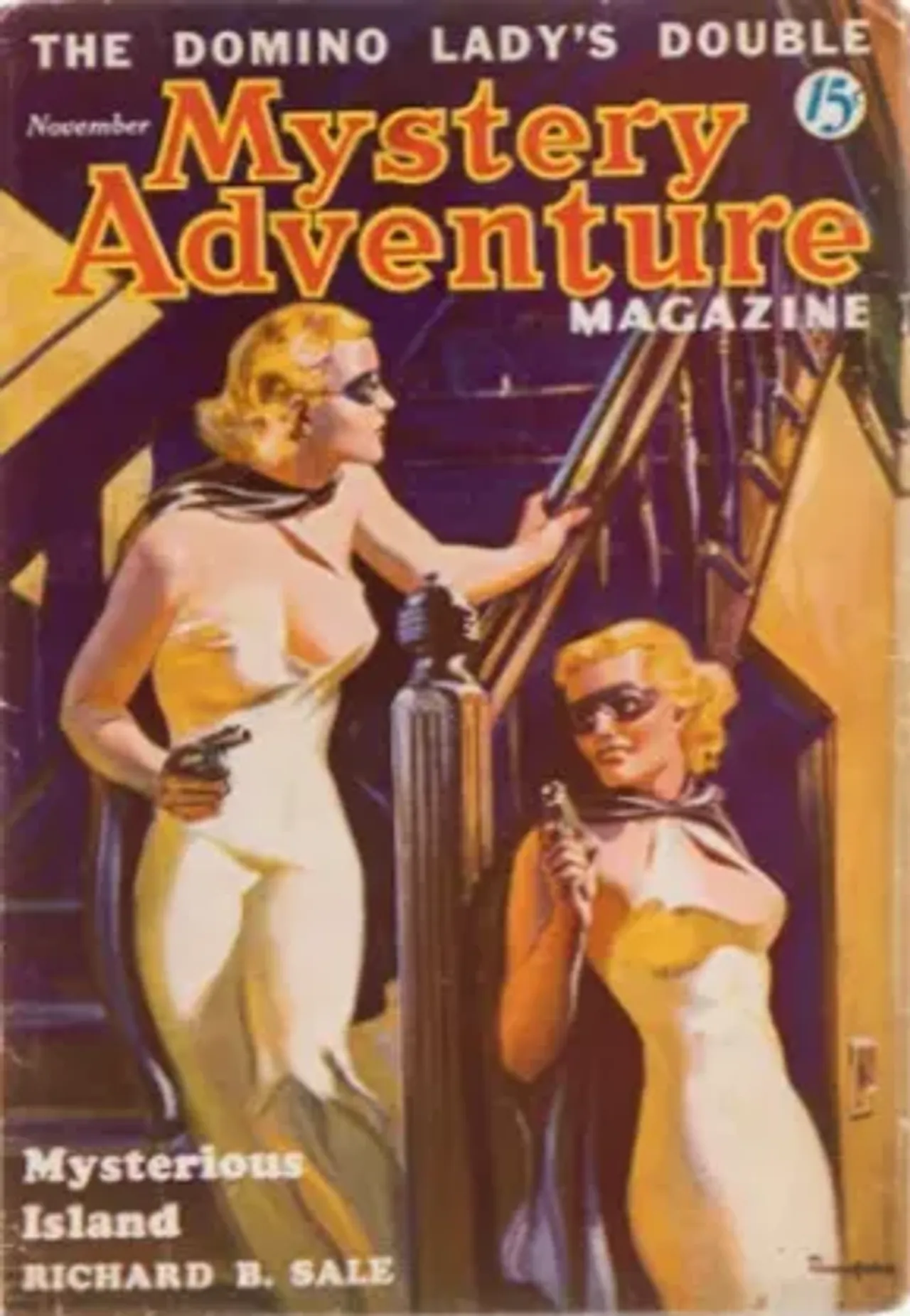 An 8.0 graded copy with off-white pages (one of two at the top of CGC’s population count) of Mystery Adventure Magazine #20 (v4#3) sold in the auction for $22,800. It was the first recorded sale of a graded copy. The issue, published by Movie Digest, Inc. in 1936, marks the final appearance of the Domino Lady.