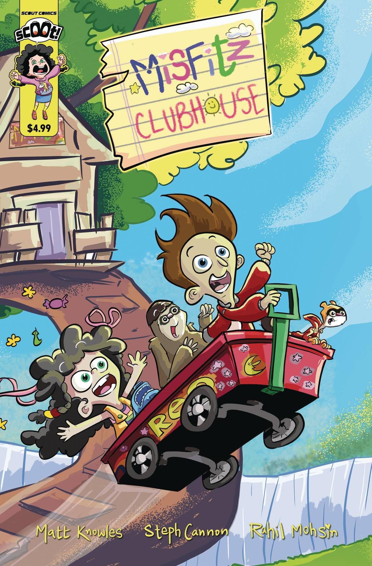 Media Release -- Scout Comics' All Age Imprint Scoot brings you all-ages shenanigans for the whole family in Misfitz Clubhouse! Stig and Meeky are bestest friends. Along with their companions, a sloth (Slothie) and a ferret (Ferry), they have some of the wildest adventures imaginable! Pure fun and good-spirited hijinks await! Aliens and pirates may only be as far away as a laundry basket, the old pinball machine in the garage, or even speeding along in their wagon! Fans of Saturday morning cartoons will love this new heartwarming series!