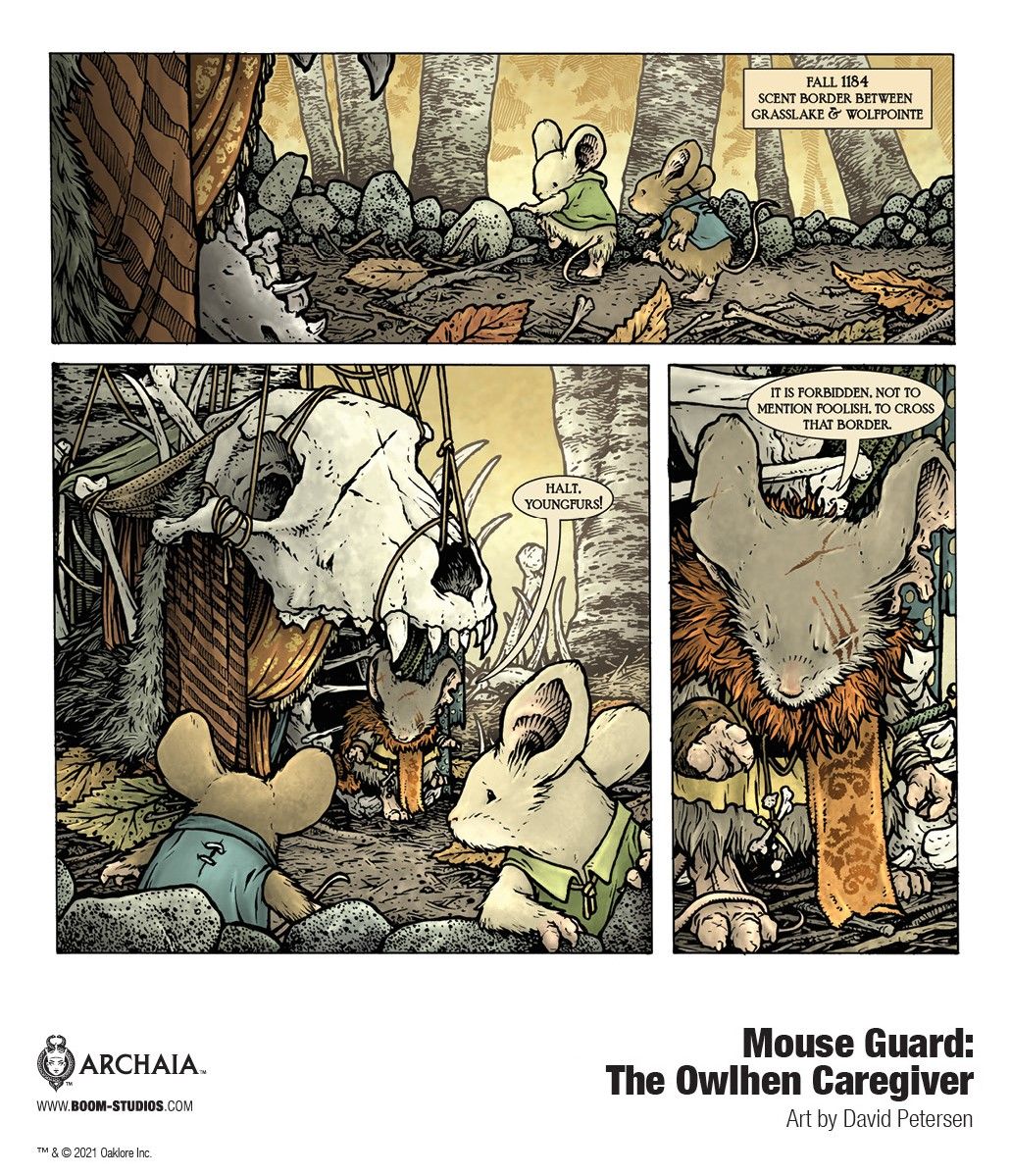 Media Release -- BOOM! Studios today announced MOUSE GUARD: THE OWLHEN CAREGIVER, a special issue that collects three poignant tales that mark creator David Petersen's return to his beloved Eisner and Harvey Award-winning, New York Times bestselling series in this self-contained special, available in July 2021.
