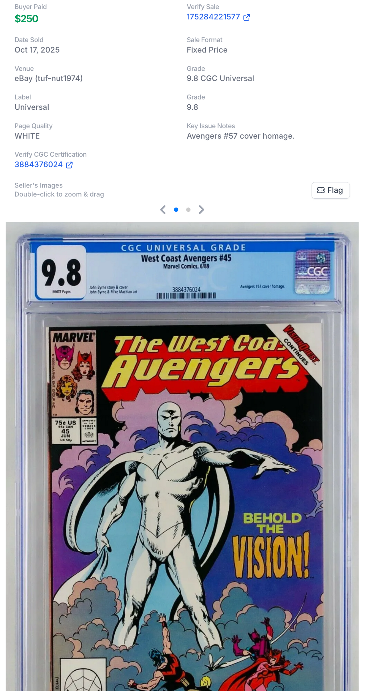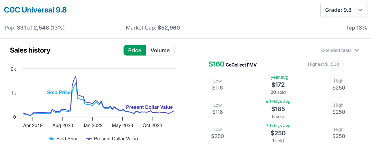 This CGC 9.8 recently sold for $250 on October 19th, its best sale in over a year: