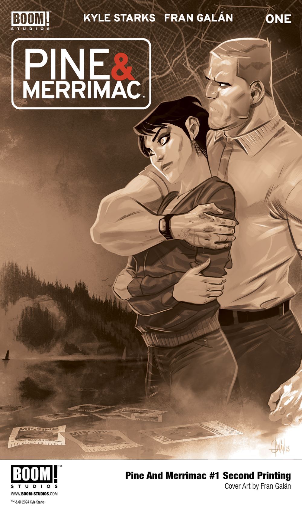 In response to the overwhelming support from retailers and fans, BOOM! Studios has announced PINE AND MERRIMAC #1 SECOND PRINTING (NOV237591), featuring cover art by series artist and co-creator Fran Galán, available in stores January 24, 2024.
