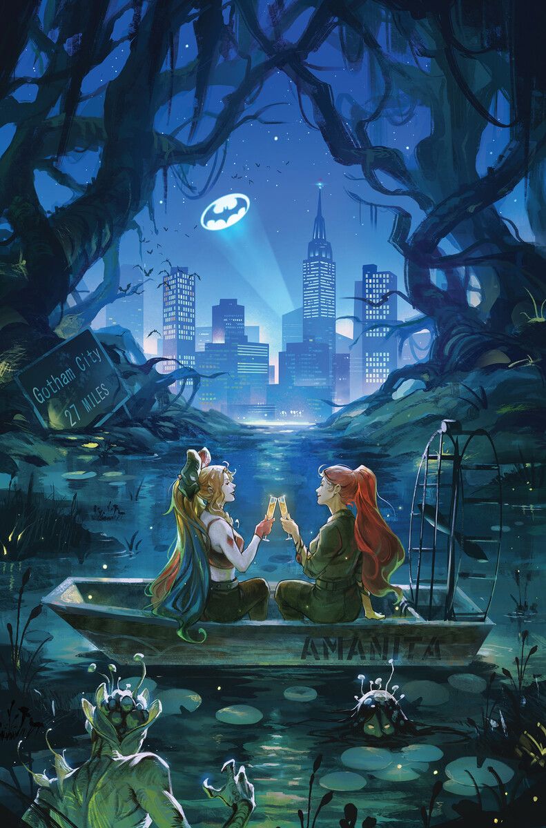 There sure is nothing quite like a romantic night with your sweetie in the swamp to make your mouth water. It's the dawn of a new day as Pamela Isley makes her return to Harley and Gotham City with a lovestruck Janet-from-HR in tow. The tension's so thick you could cut it with a fan boat's propeller!