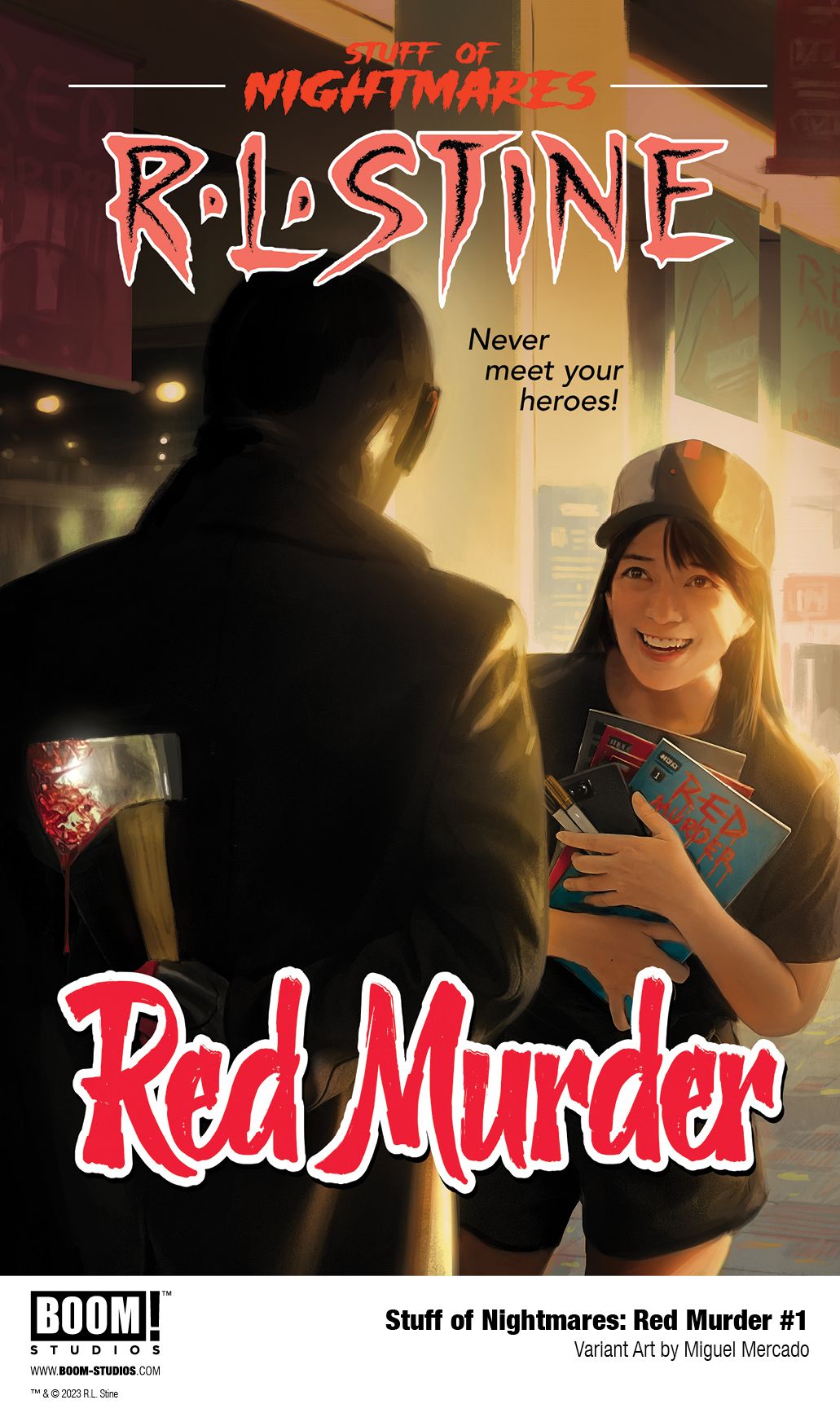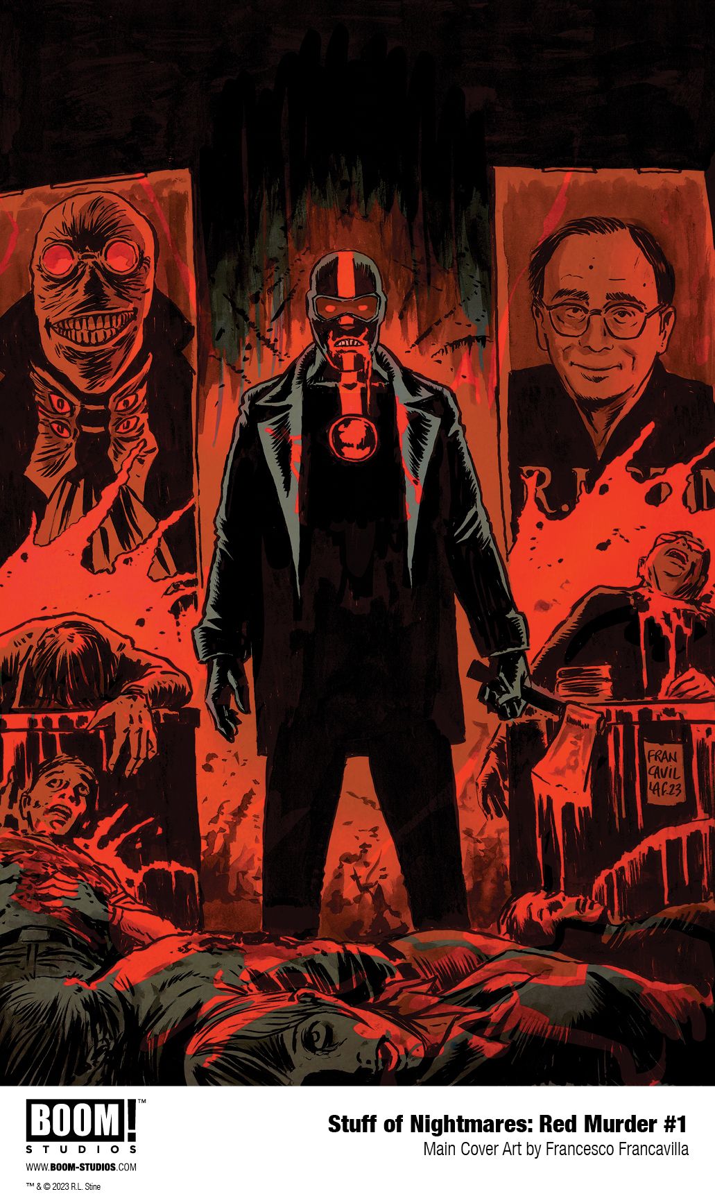 STUFF OF NIGHTMARES: RED MURDER is the newest release from BOOM! Studios' eponymous imprint, home to critically acclaimed original series, including BRZRKR by Keanu Reeves, Matt Kindt, and Ron Garney; Something is Killing the Children by James Tynion IV and Werther Dell'Edera; Once & Future by Kieron Gillen and Dan Mora; Eve by Victor LaValle and Jo Mi-Gyeong; The Many Deaths of Laila Starr by Ram V and Filipe Andrade; Wynd by James Tynion IV and Michael Dialynas; Grim by Stephanie Phillips and Flaviano; Briar by Christopher Cantwell and Germán García; Stuff of Nightmares by R.L. Stine and A.L. Kaplan; The Approach by Jeremy Haun, Jason A. Hurley, and Jesus Hervas; Damn Them All by Simon Spurrier and Charlie Adlard; Behold, Behemoth by Tate Brombal and Nick Robles; Specs by David M. Booher and Chris Shehan; Once Upon a Time at the End of the World by Jason Aaron, Alexandre Tefenkgi, Leila del Duca, and Nick Dragotta; Know Your Station by Sarah Gailey and Liana Kangas; A Vicious Circle by Mattson Tomlin and Lee Bermejo; Mosely by Rob Guillory and Sam Lotfi; Harrower by Justin Jordan and Brahm Revel; The Neighbors by Jude Ellison S. Doyle and Letizia Cadonici; and The Seasons Have Teeth by Dan Watters and Sebastián Cabrol. The imprint also publishes popular licensed properties, including Dune: House Harkonnen from Brian Herbert, Kevin J. Anderson, and Michael Shelfer; Mighty Morphin Power Rangers from Melissa Flores and Simona Di Gianfelice; Magic from Jed McKay, Rich Douek, and Ig Guara; and The Expanse: Dragon Tooth by Andy Diggle and Rubine.