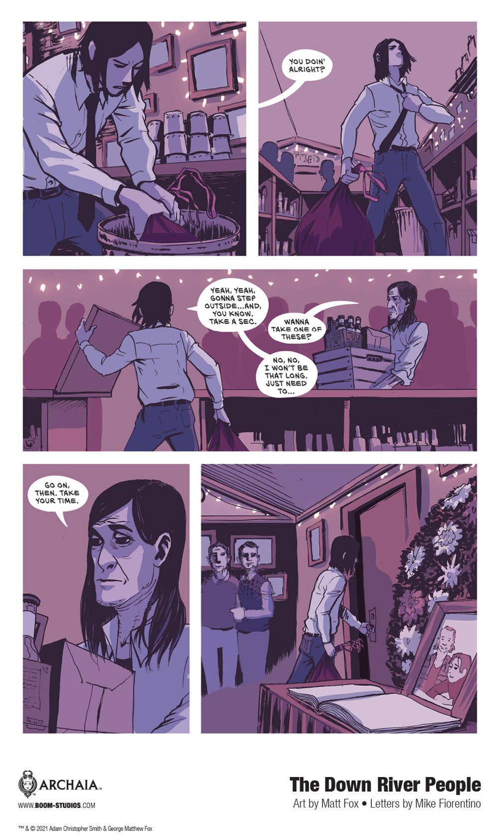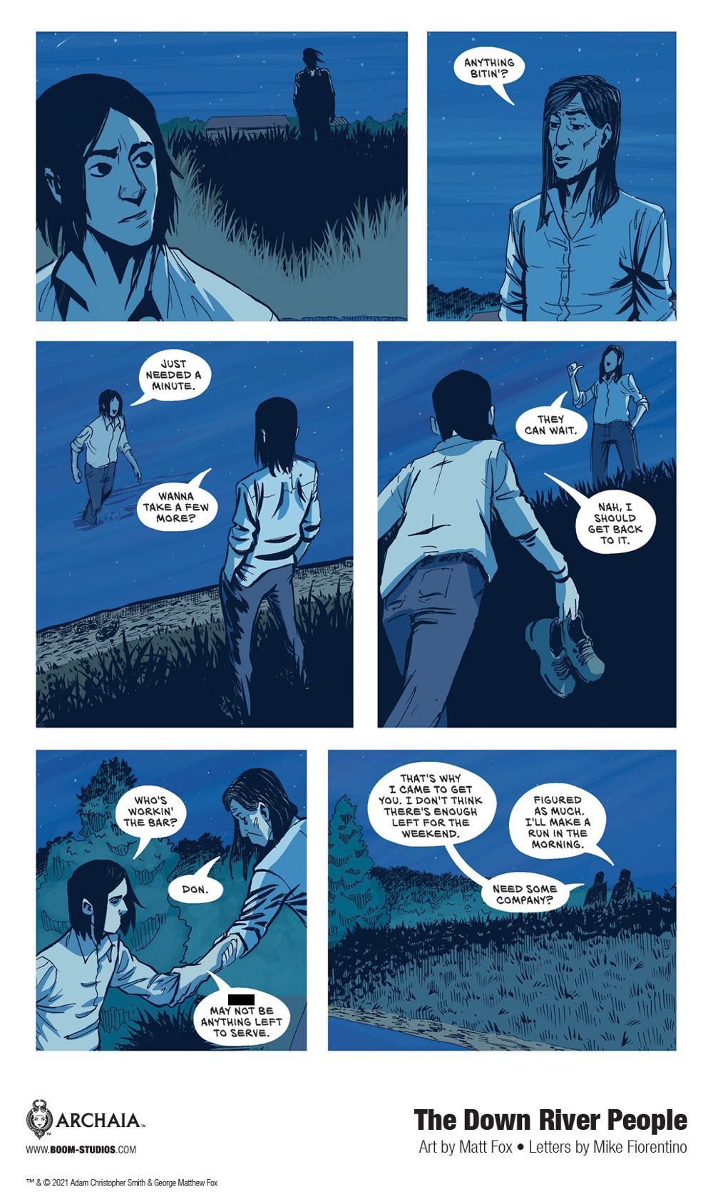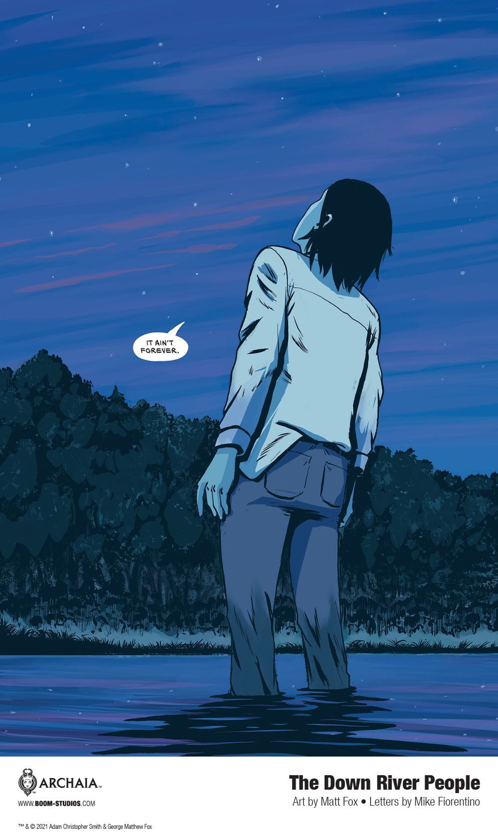 Print copies of THE DOWN RIVER PEOPLE will be available for sale on May 26, 2021 at local comic book shops (use comicshoplocator.com to find the nearest one) and on June 1, 2021 at bookstores or at the BOOM! Studios webstore. Digital copies can be purchased from content providers, including comiXology, iBooks, Google Play, and Madefire.